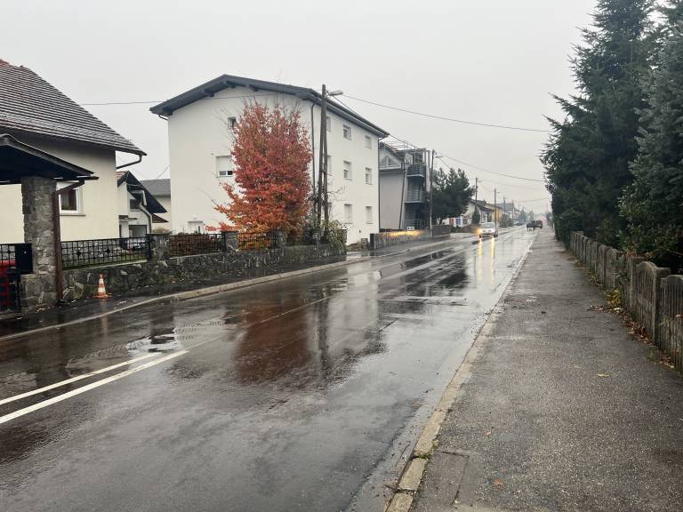 Zanimivo je tudi, da je bil pločnik saniran samo na eni strani ceste.
