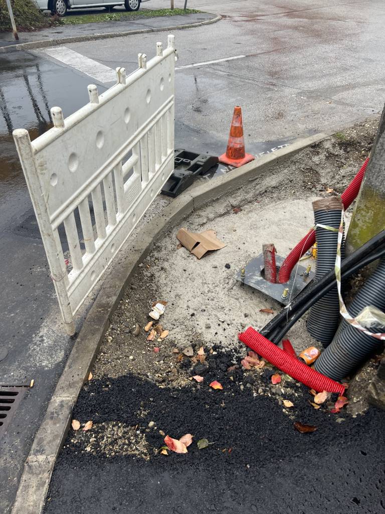 Glede na to, da sta bila cesta in pločnik na novo asfaltirana, bi pričakovali, da tovrstnih težav za zdaj (oziroma še lep čas) ne bi bilo.