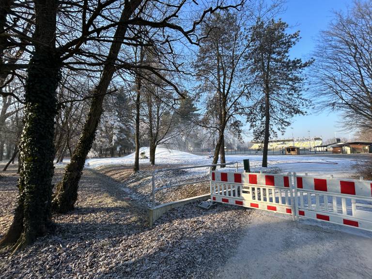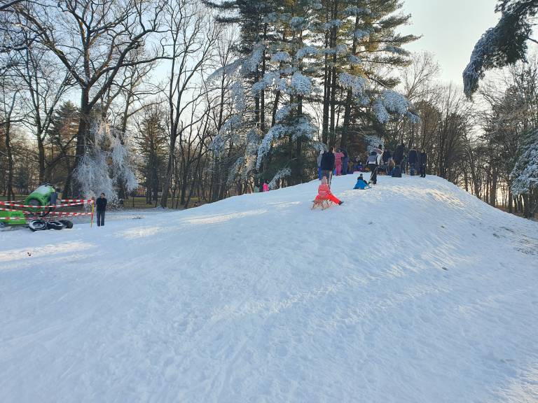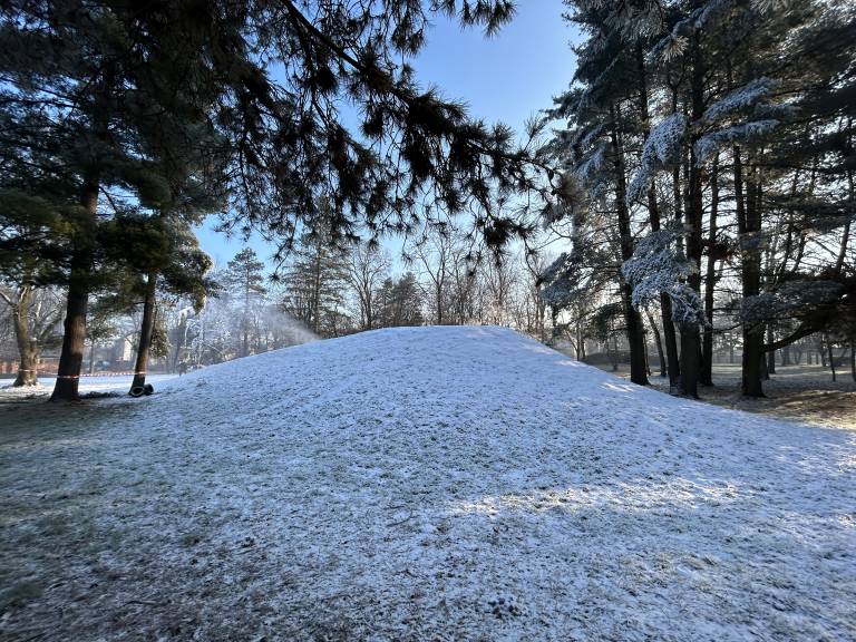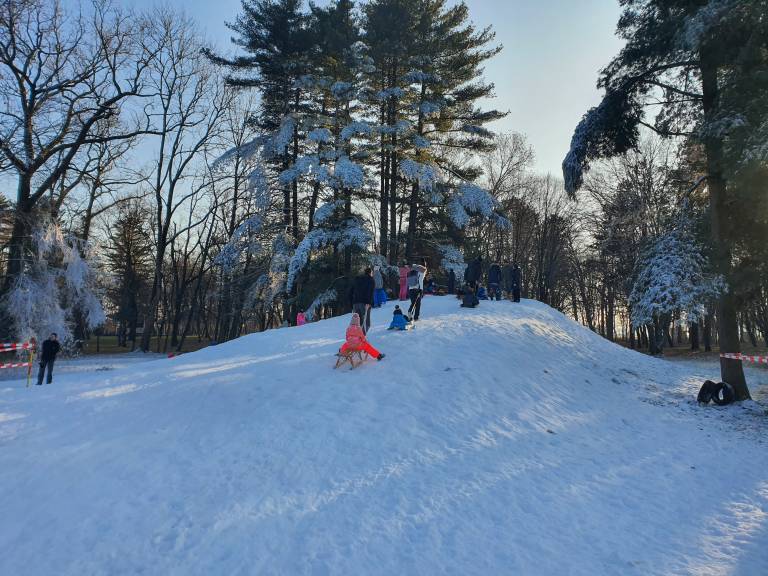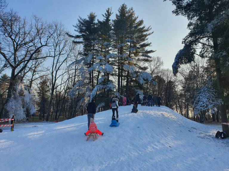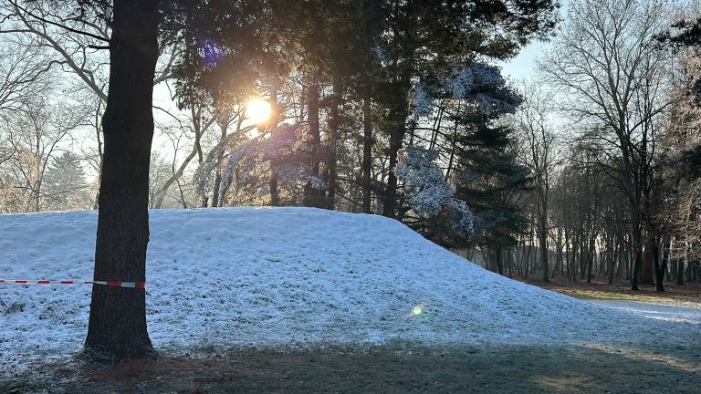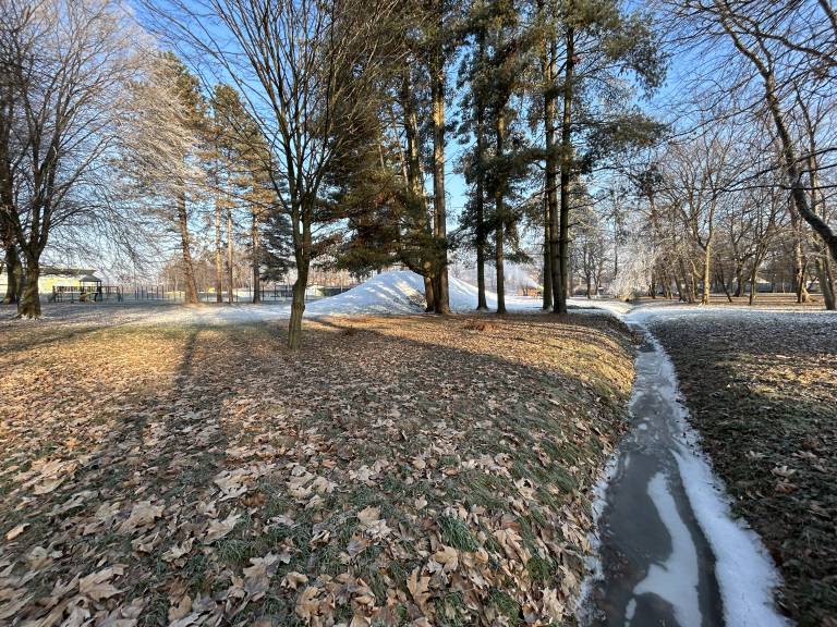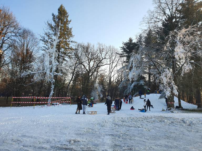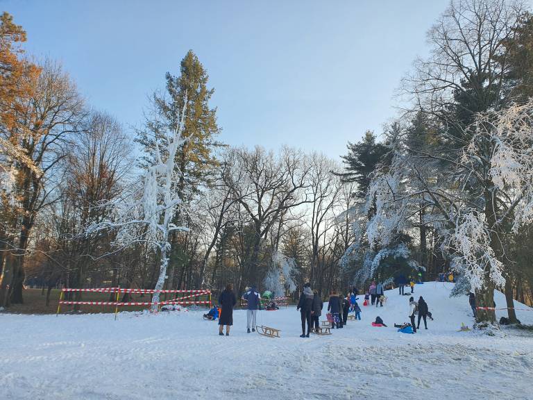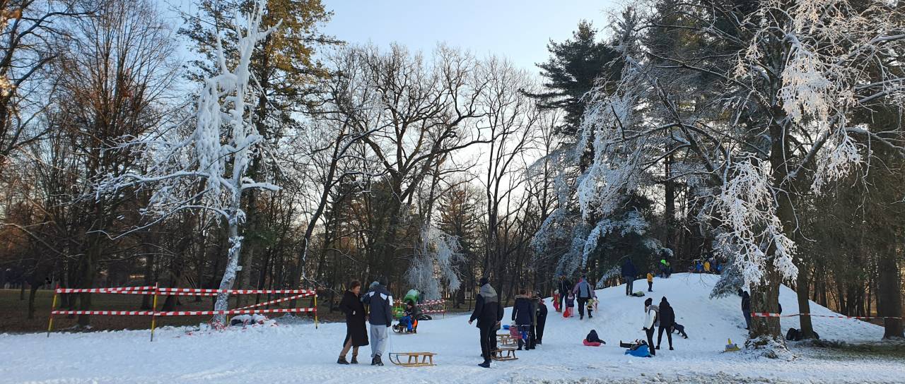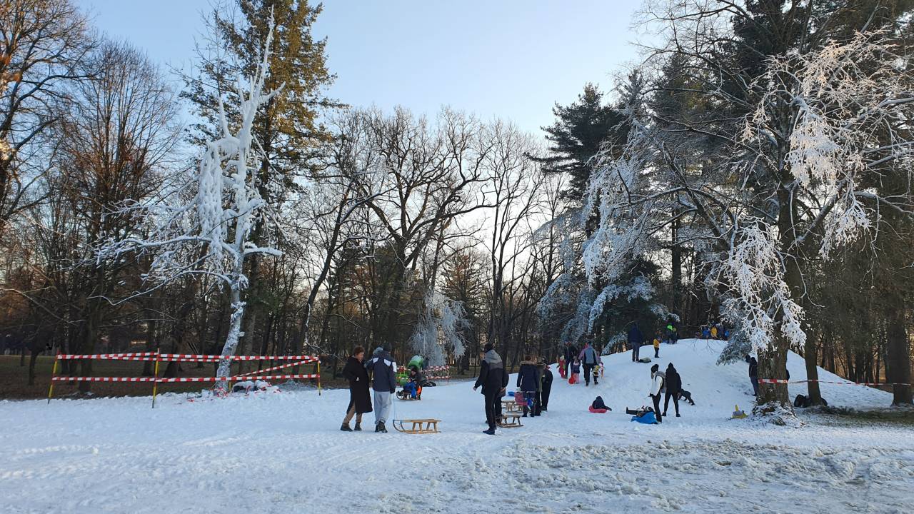 Zasneženo klančino najdete v parku pri beltinškem gradu.