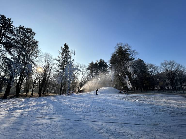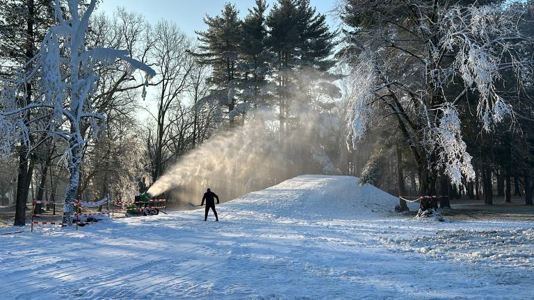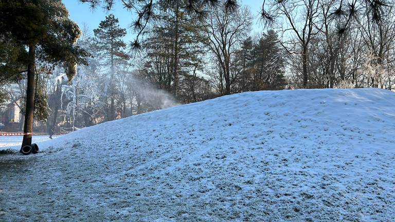Če snega ni dovolj, ga v Beltincih naredijo kar sami. Za popestritev zime uporabljajo snežni top, ki je v parku pri beltinškem gradu mlajšim in tudi malo starejšim omogočil igrive radosti na umetnem snegu.