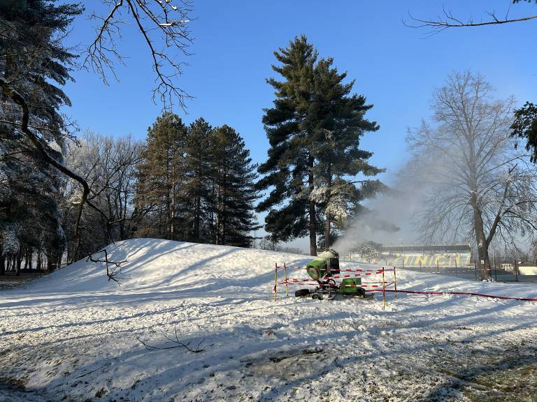 Trenutne razmere dopuščajo uporabo snežnega topa, zato ne zamudite priložnosti in svoje otroke razveselite z obiskom beltinškega parka.
