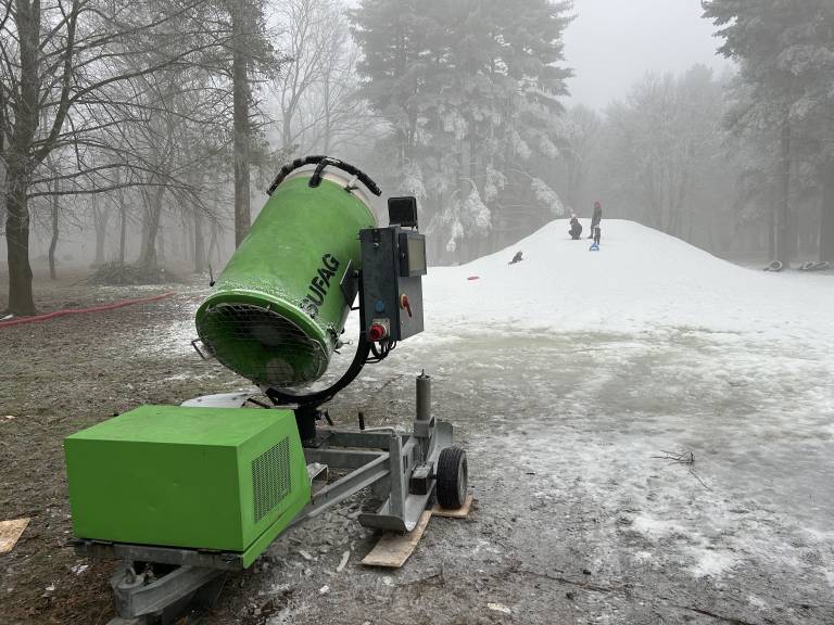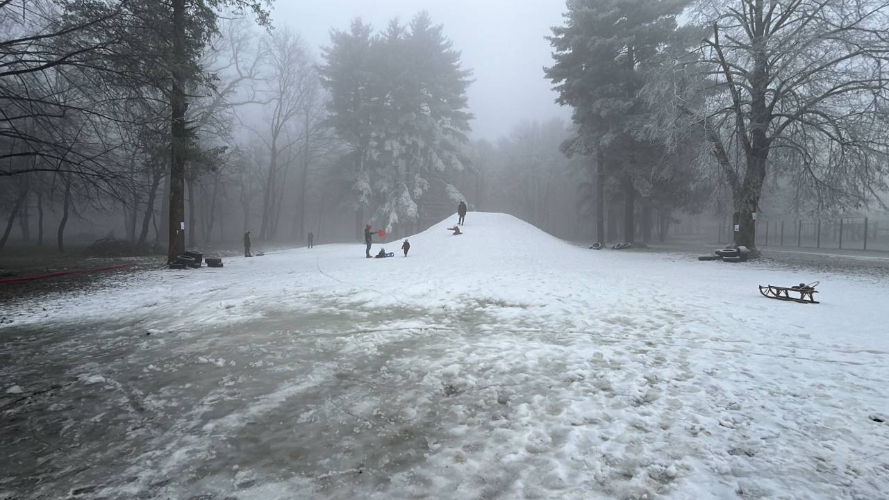 Snežni top so prižgali minuli konec tedna in poskrbeli, da lahko otroci kljub pomanjkanju snega uživajo v zimskih radostih.