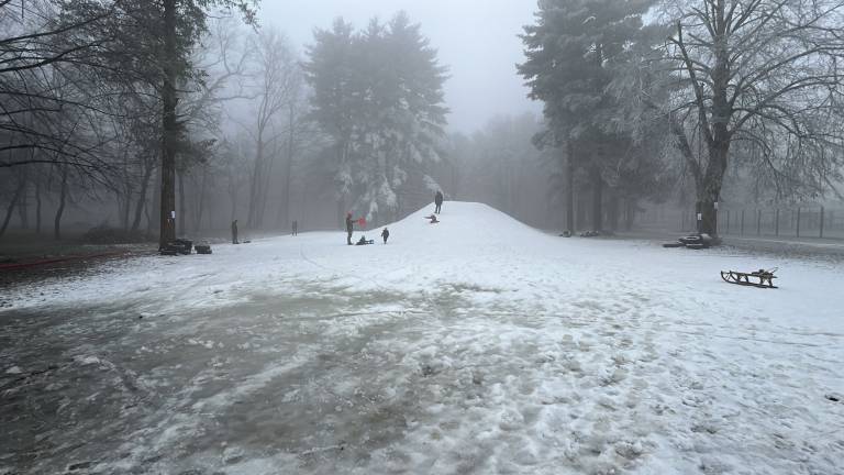 Temperature zadnje dni omogočajo izdelavo umetnega snega, zato otroci že lahko uživajo v zimskih radostih.
