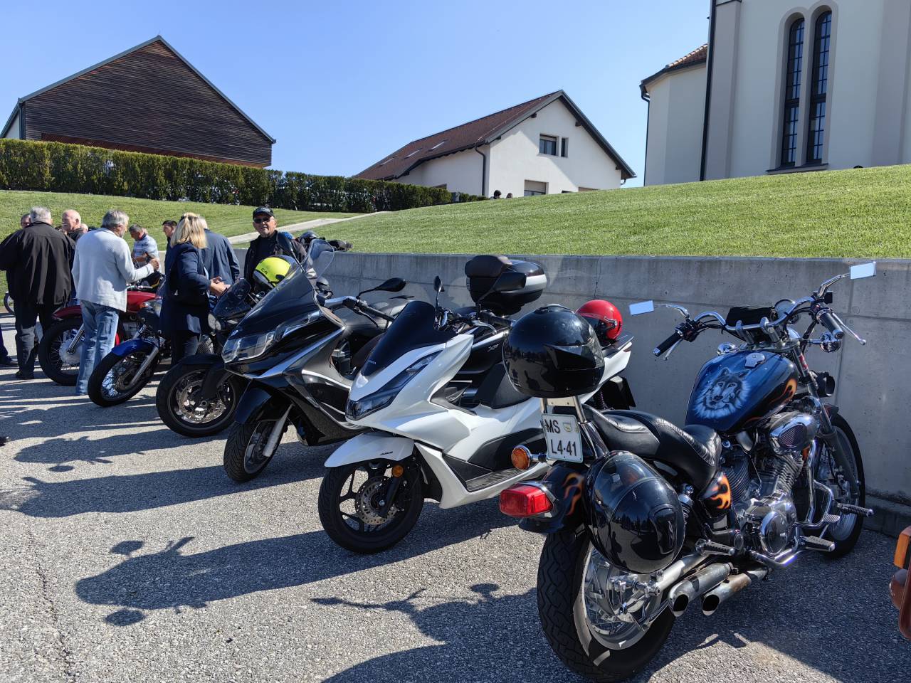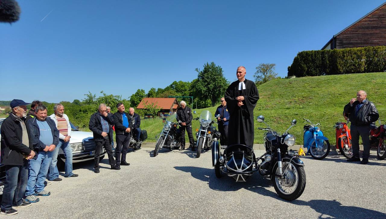 Pri evangeličanski cerkvi so se zbrali ljubitelji jeklenih starin in prejeli blagoslov za varno vožnjo.