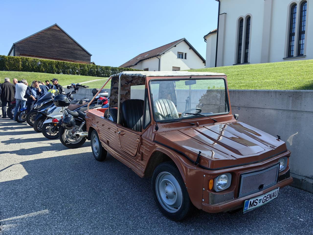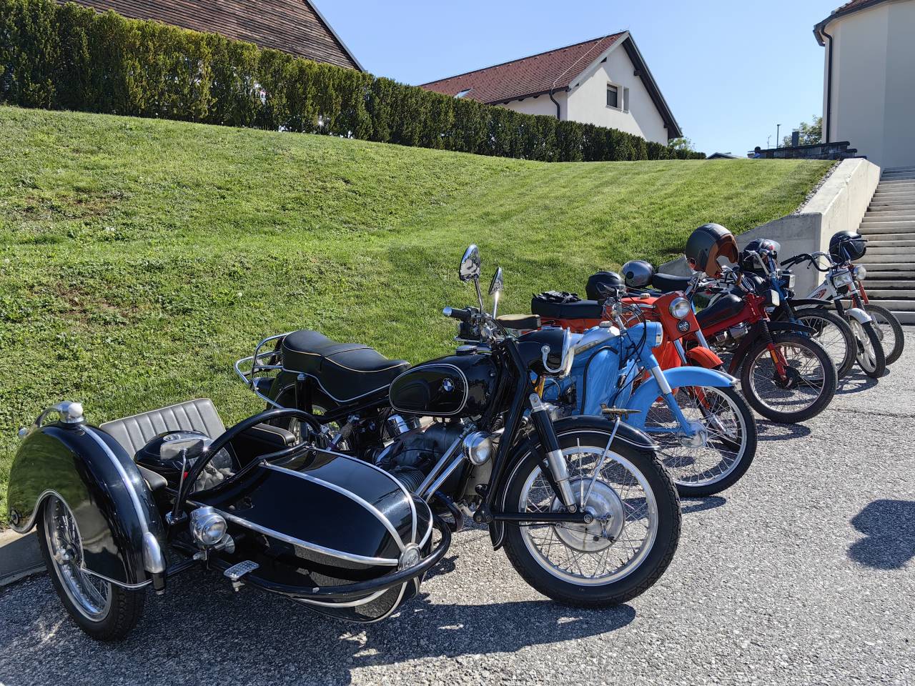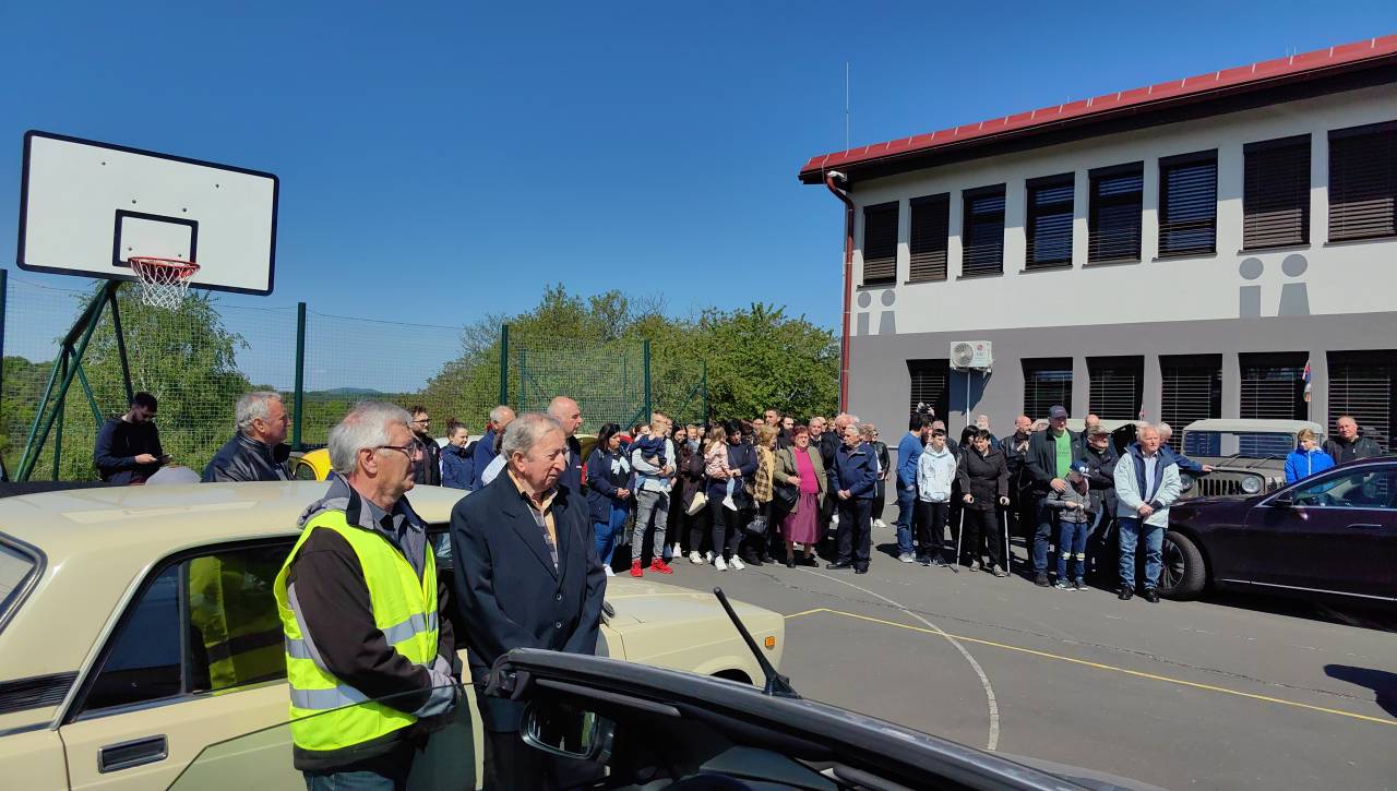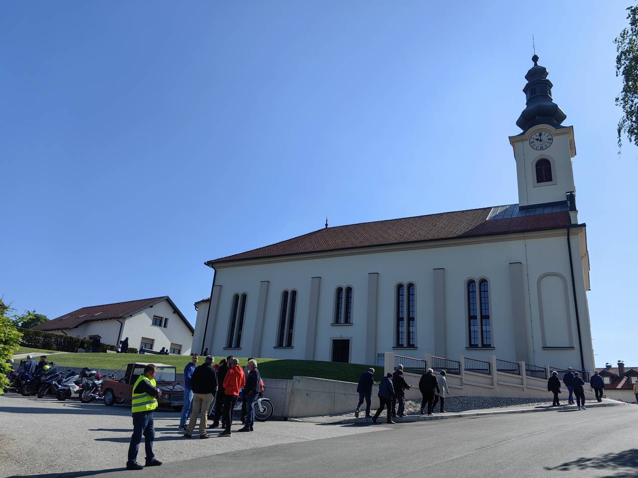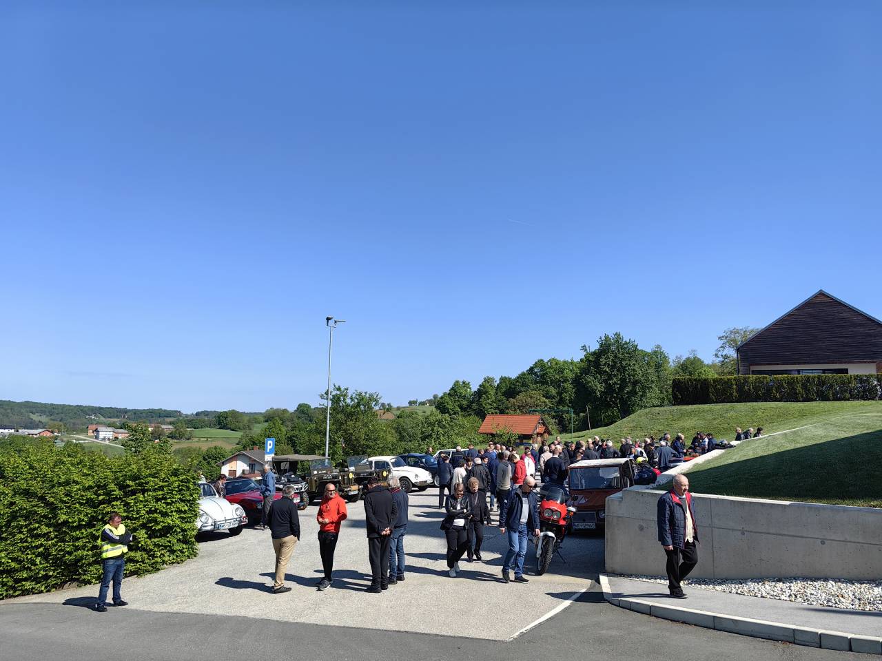 Na cerkvenem dvorišču so se zbrali številni lastniki in navdušenci nad starodobnimi vozili, ki so na sončno dopoldne pripeljali motocikle in avtomobile iz različnih obdobij prejšnjega stoletja.