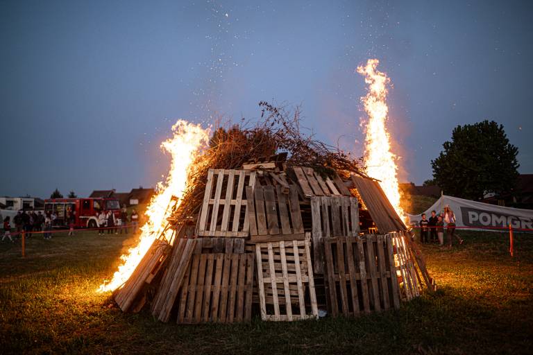 Ko je sonce začelo zahajati, so prižgali velik kres, ki je že vrsto let osrednji simbol praznovanja praznika dela v Černelavcih.