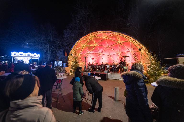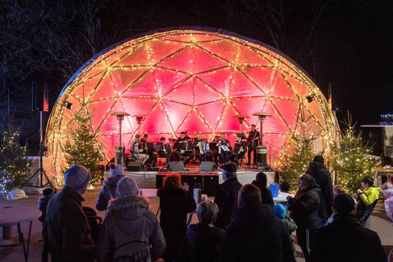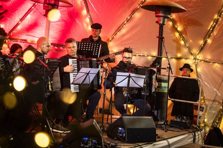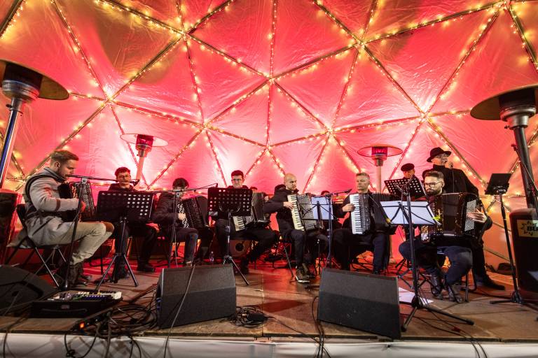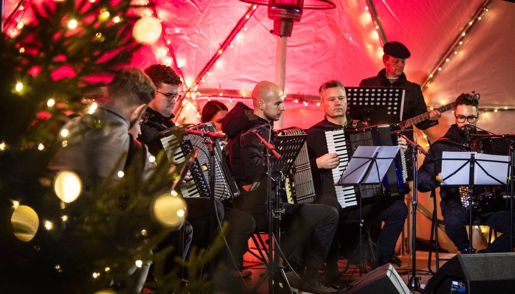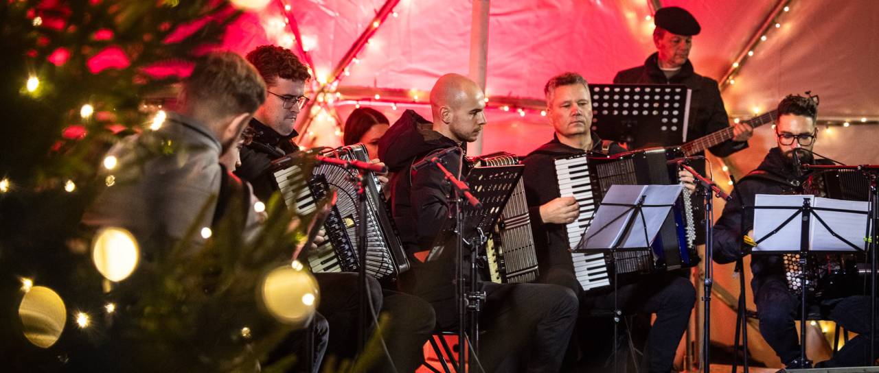 Ob Drevoredu Martina Luthra je včeraj, 20. decembra, nastopil Soboški harmonikarski orkester.
