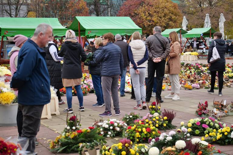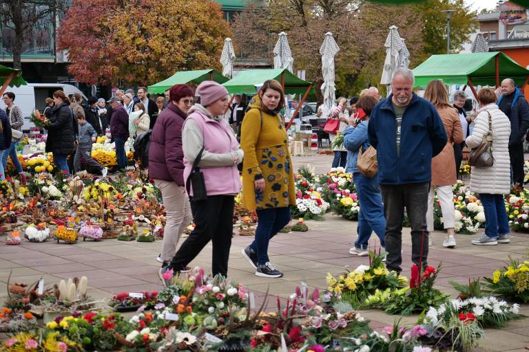Odpravili smo se na Trg kulture in soboško tržnico, kjer so številni obiskovalci že izbirali cvetje, aranžmaje in sveče za grobove svojih najdražjih.