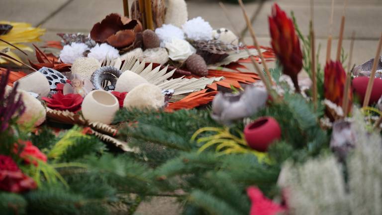 Ob cvetju in svečah se na stojnicah ponujajo tudi ročno izdelani spominski izdelki – med drugim leseni okraski, kamenčki z napisi in eko sveče iz naravnih materialov, ki postajajo vedno bolj priljubljene.