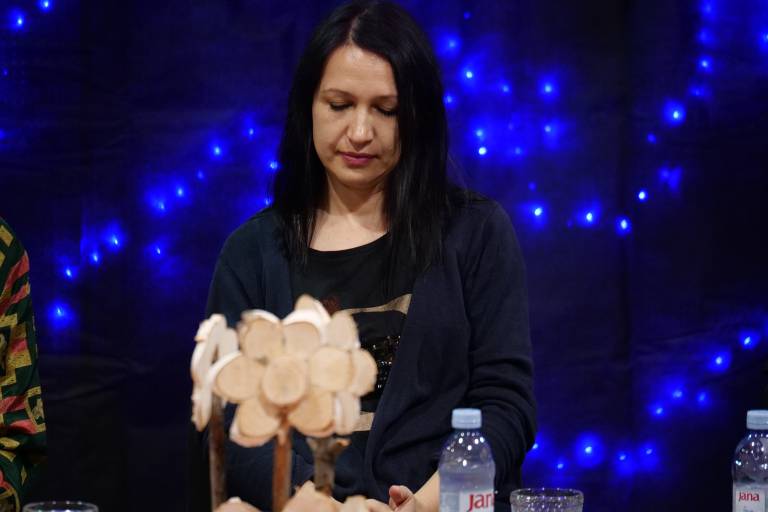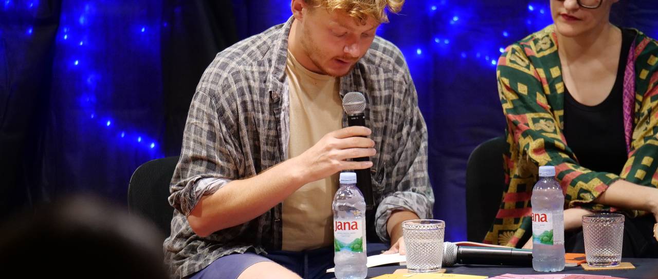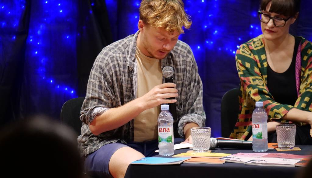 Pogovor z avtoricami je vodil Benjamin Langner. Obiskovalci so tako imeli priložnost spoznati ustvarjanje na presečišču različnih kultur in umetniških izrazov, ki se dotikajo sodobnih tem, kot so ekonomija, osebna izguba in družbena kritika.