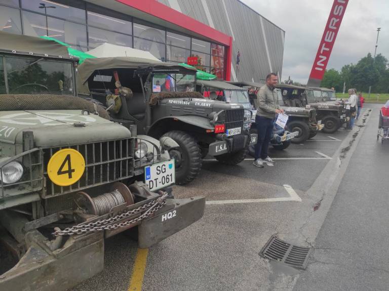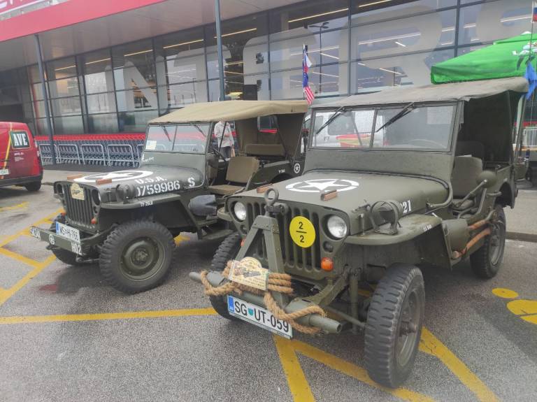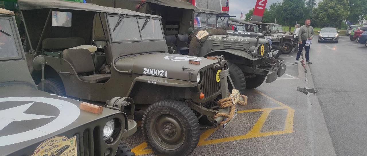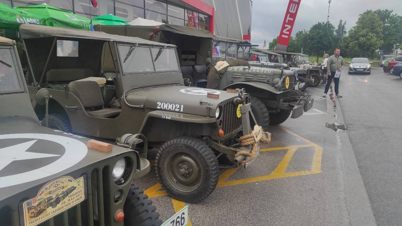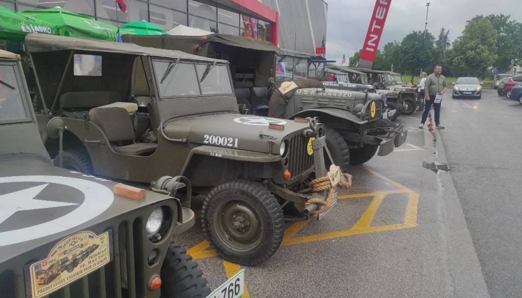 V Murski Soboti pred nakupovalnim središčem BTC City danes poteka razstava starodobnih vojaških vozil - Jepp club veteran.