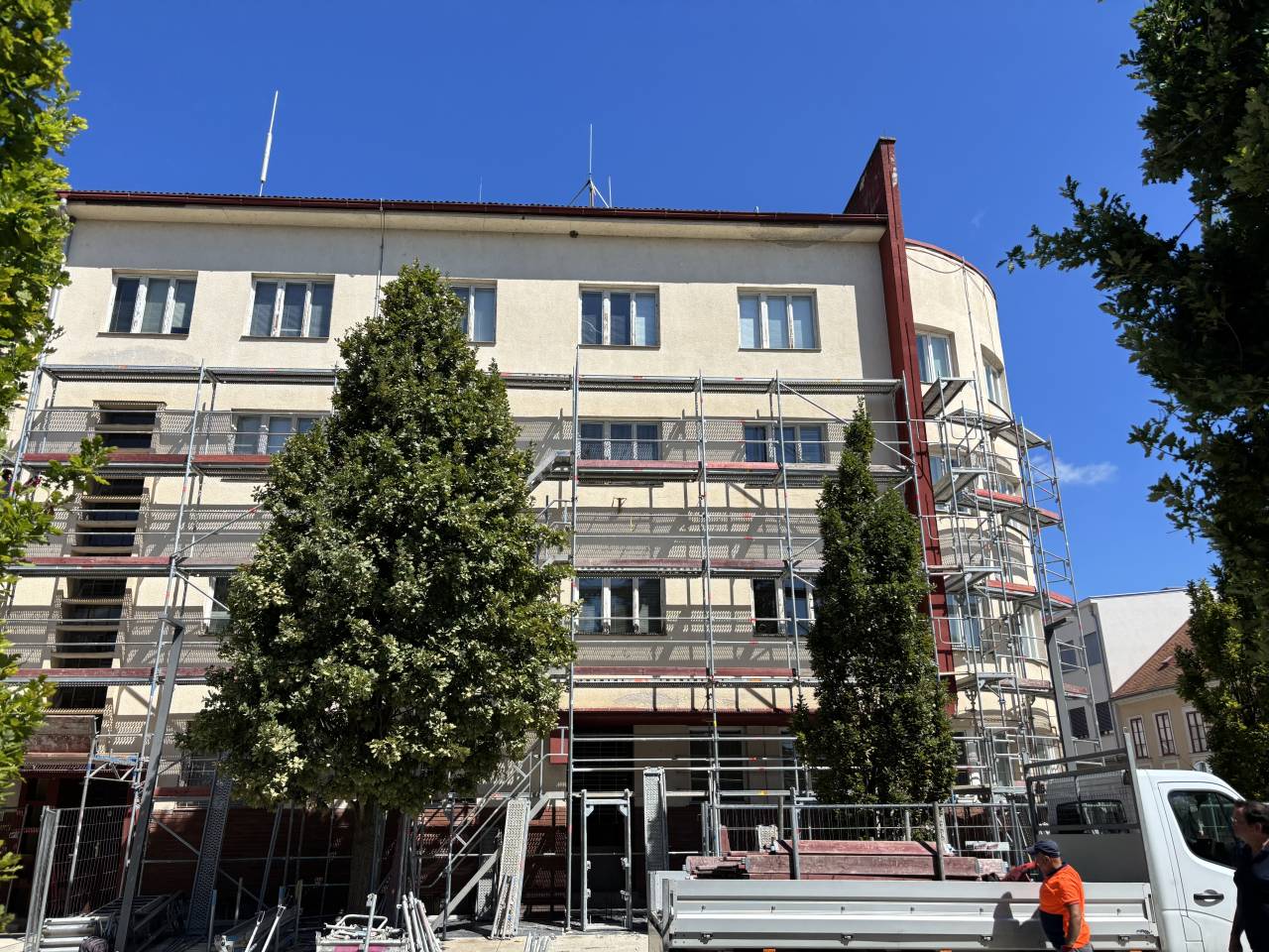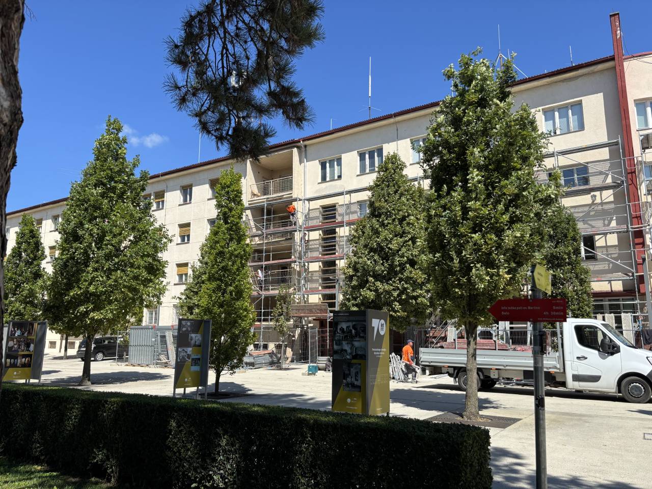 - Fasaderska dela in energetska sanacija: V prvi fazi so na Slovenski ulici in Trgu Martina Lutra že postavili gradbeni oder, ki omogoča začetek fasaderskih del. Ta dela, ki jih izvaja podjetje Slikopleskarstvo in fasaderstvo Merica, bodo trajala šest mesecev in predstavljajo pomemben korak k energetski sanaciji objekta.