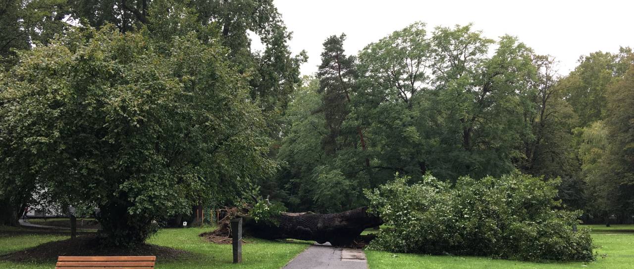 V murskosoboškem parku se je najverjetneje zaradi obilice dežja in močnejšega vetra podrlo večje drevo, ki je padlo na priljubljeno sprehajalno stezo. K padcu drevesa je bržkone pripomogla tudi njegova starost in razmočenost.