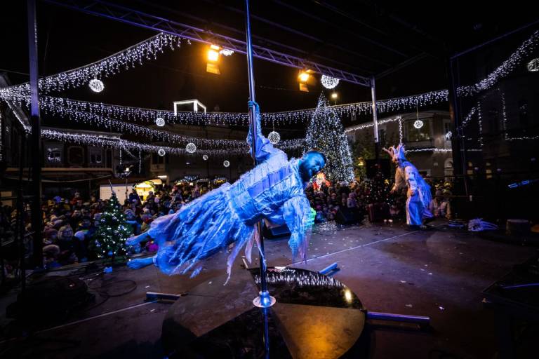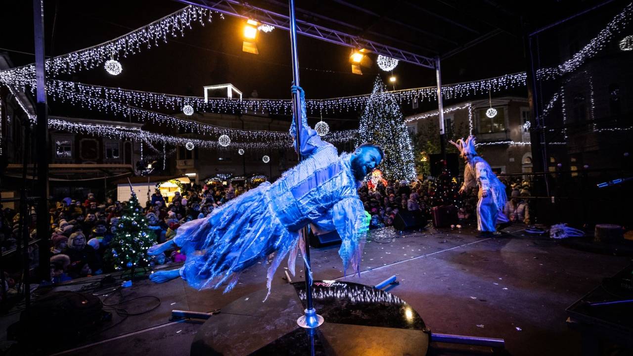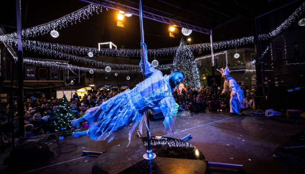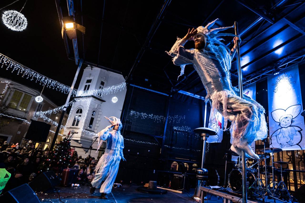 Po prižigu lučk je sledila predstava za otroke Ledena kraljica in nastop lokalnega ptujskega banda Laganini.
