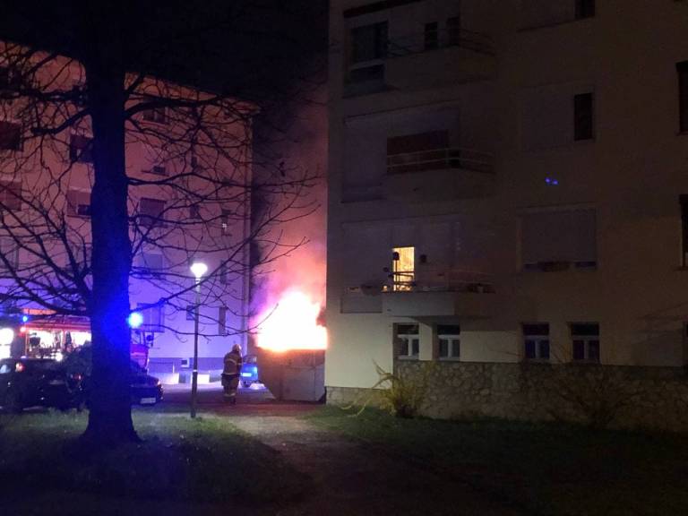 Ob 19.48 je zagorelo na Ulici Štefana Kovača v središču Murske Sobote. Po prvih znanih podatkih je zagorel keson oziroma večji smetnjak za smeti.