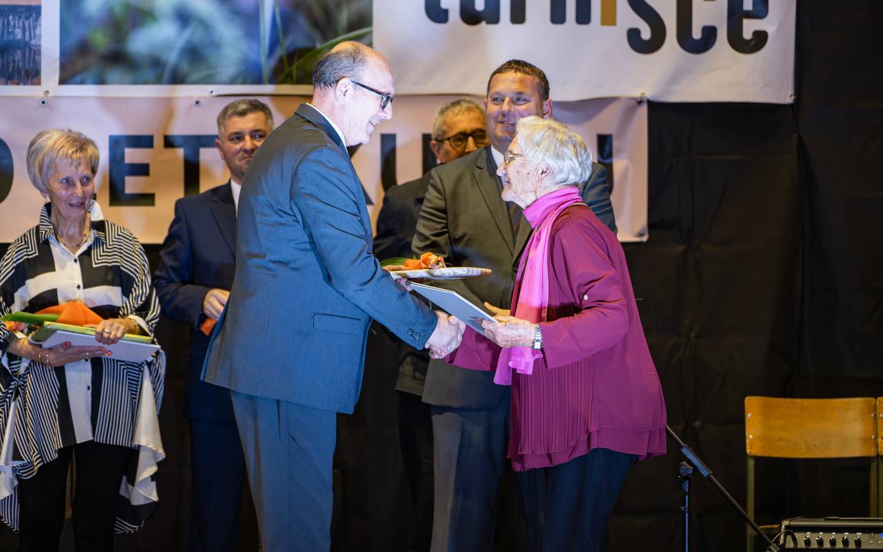 Ana Ferčak, ki je pri 90 letih še vedno aktivna članica ročnodelske sekcije Društva upokojencev Turnišče, je prejela plaketo za prispevek k ohranjanju tradicionalnih veščin.