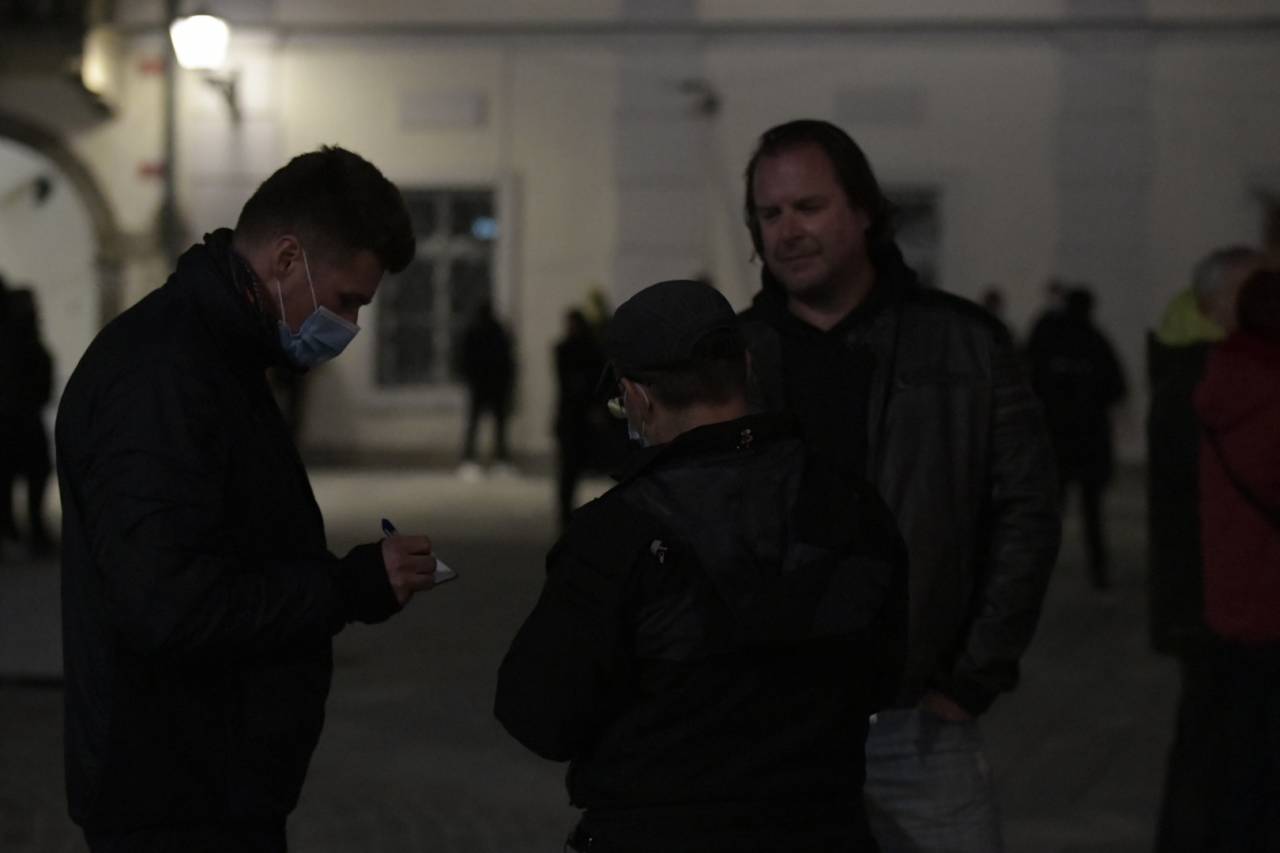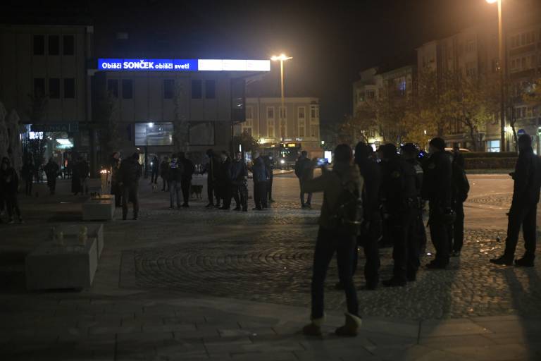 Na Glavnem trgu se je zbralo več deset protestnikov, ki so med drugim vzklikali, da policijska ura ni ustavna. Med protestniki je prišlo do verbalnega spopada. Tudi med policijo in protestniki je prišlo tudi do nekaj hude krvi, protestniki so policistom namenili nekaj grdih besed.