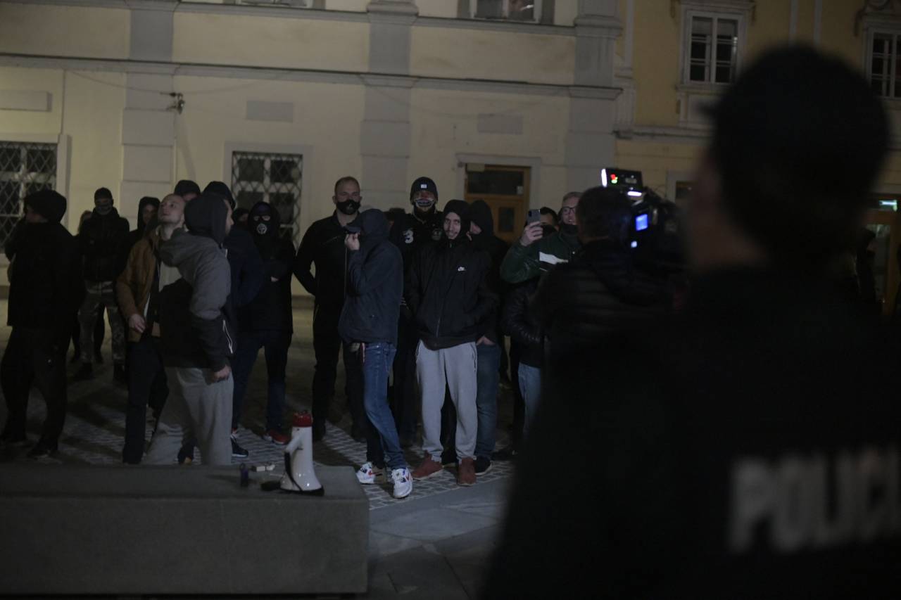 Ob 21. uri je v veljavo stopila policijska ura oziroma omejitev gibanja med 21. in 6. uro. Ravno zaradi tega ukrepa se je v štajerski prestolnici na ulici zbrala skupina protestnikov.