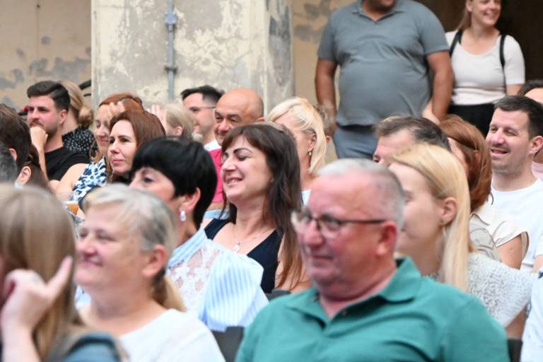 Na grajskem dvorišču v prijetnem parku so pripravili stendapovski večer s kar tremi komiki.