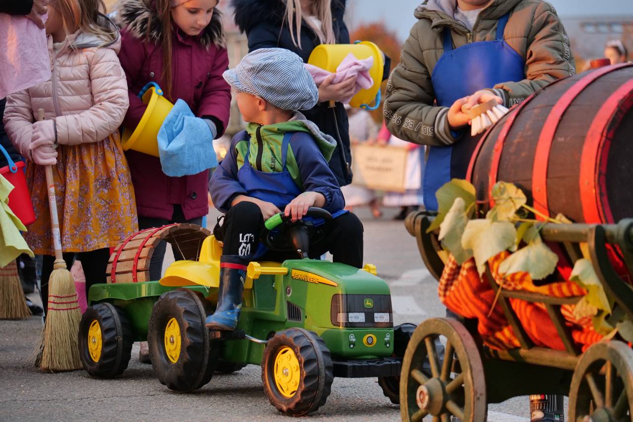 Najmlajši udeleženci so s svojimi jesenskimi opravami, kostumi in rekviziti pričarali posebno toplino in veselje ter poželi bučen aplavz obiskovalcev. Povorka je bila del pestrega sobotnega programa, ki je združil vino, kulinariko, kulturo in zabavo.