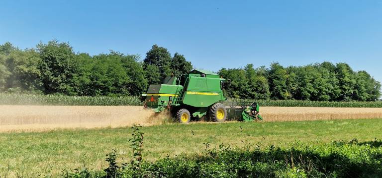 »Zdaj pa se pripravljamo na žetev. Pripravili smo kombanj, se pravi, tisto prvo jutranje čiščenje, da ga pripravimo.«