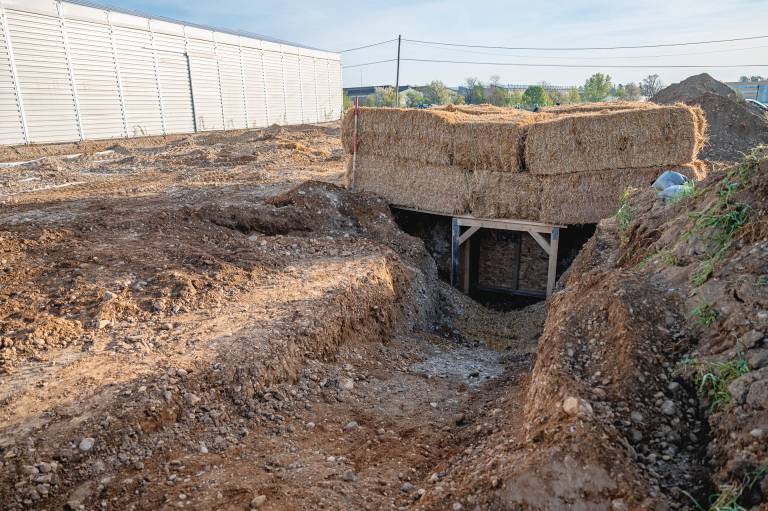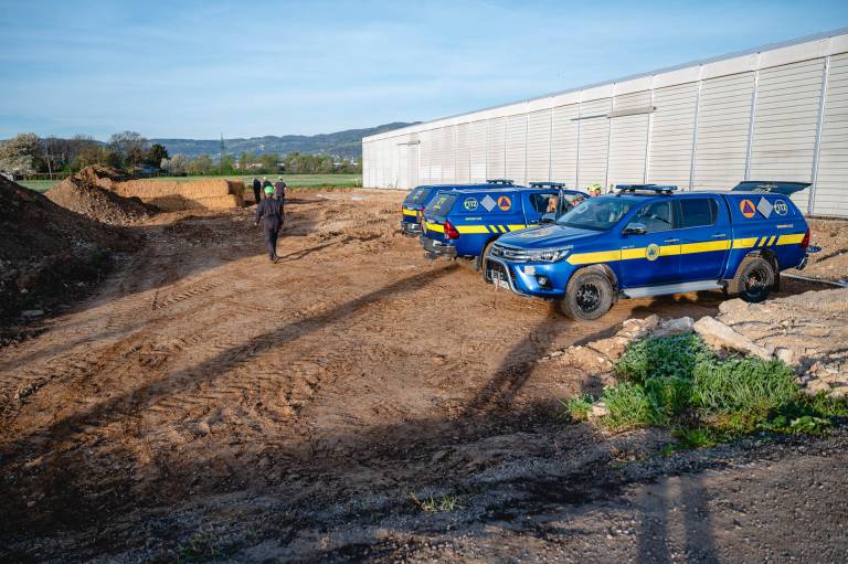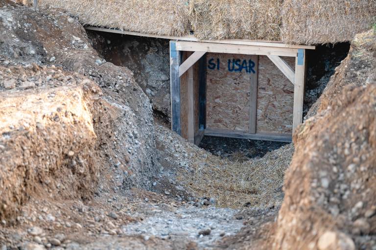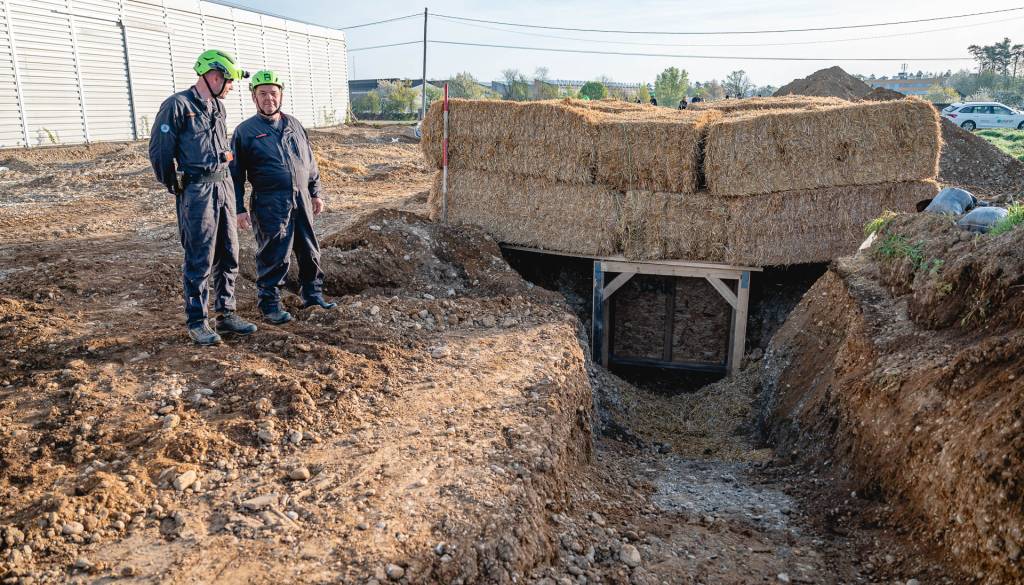 Pripravili so štiri metre globoko jamo, ki so jo iz varnostnih razlogov obdali z balami sena. V organizaciji za deaktivacijo sodeluje več kot 150 oseb.