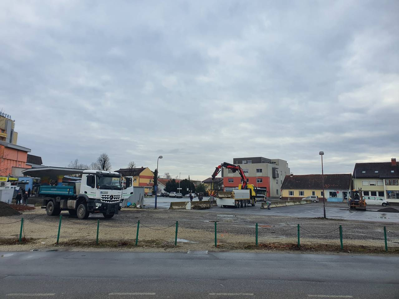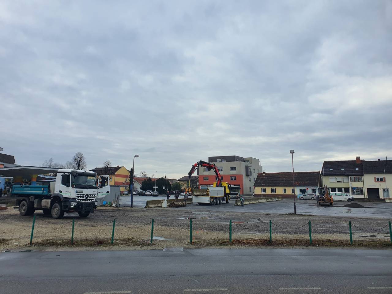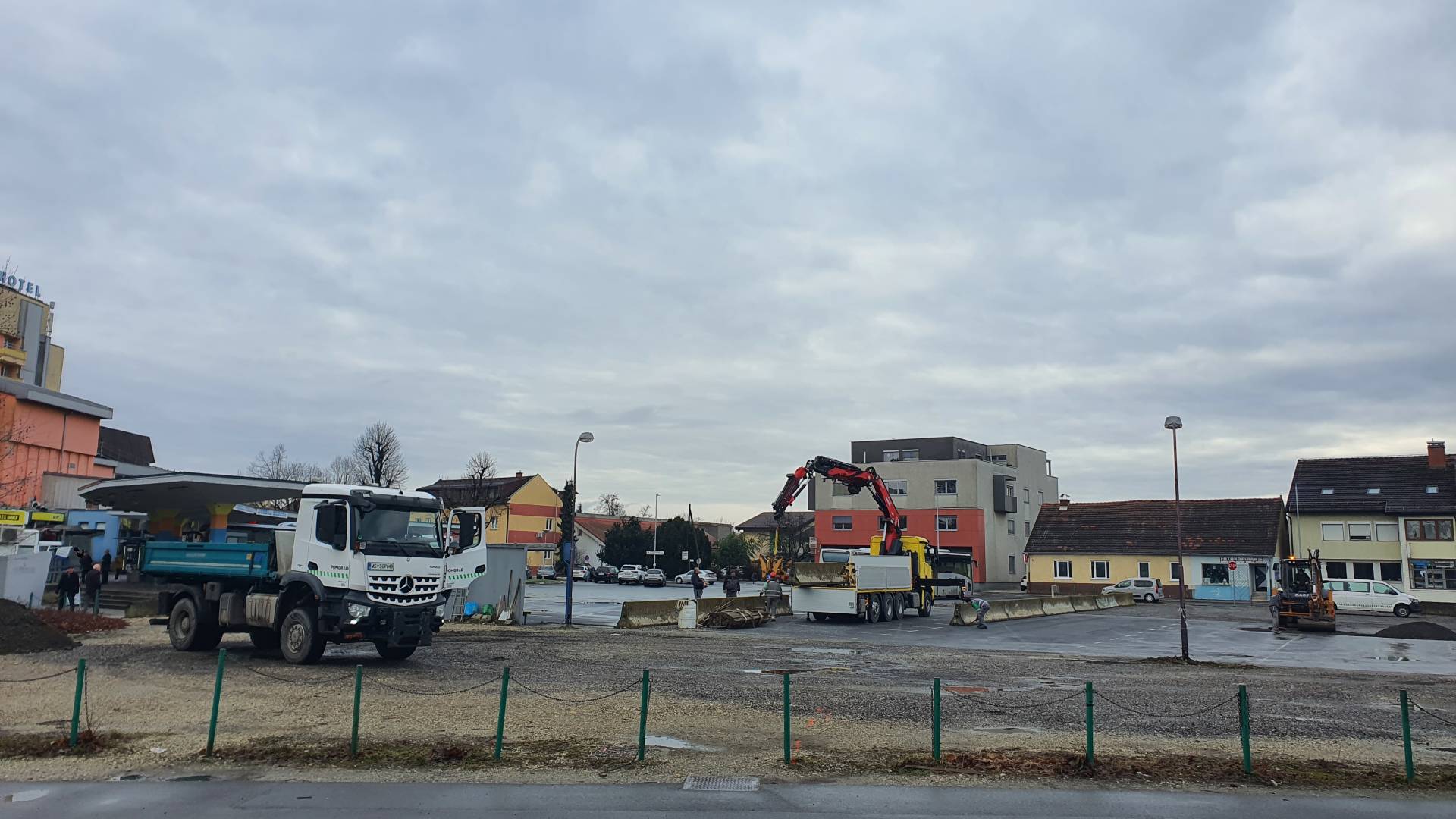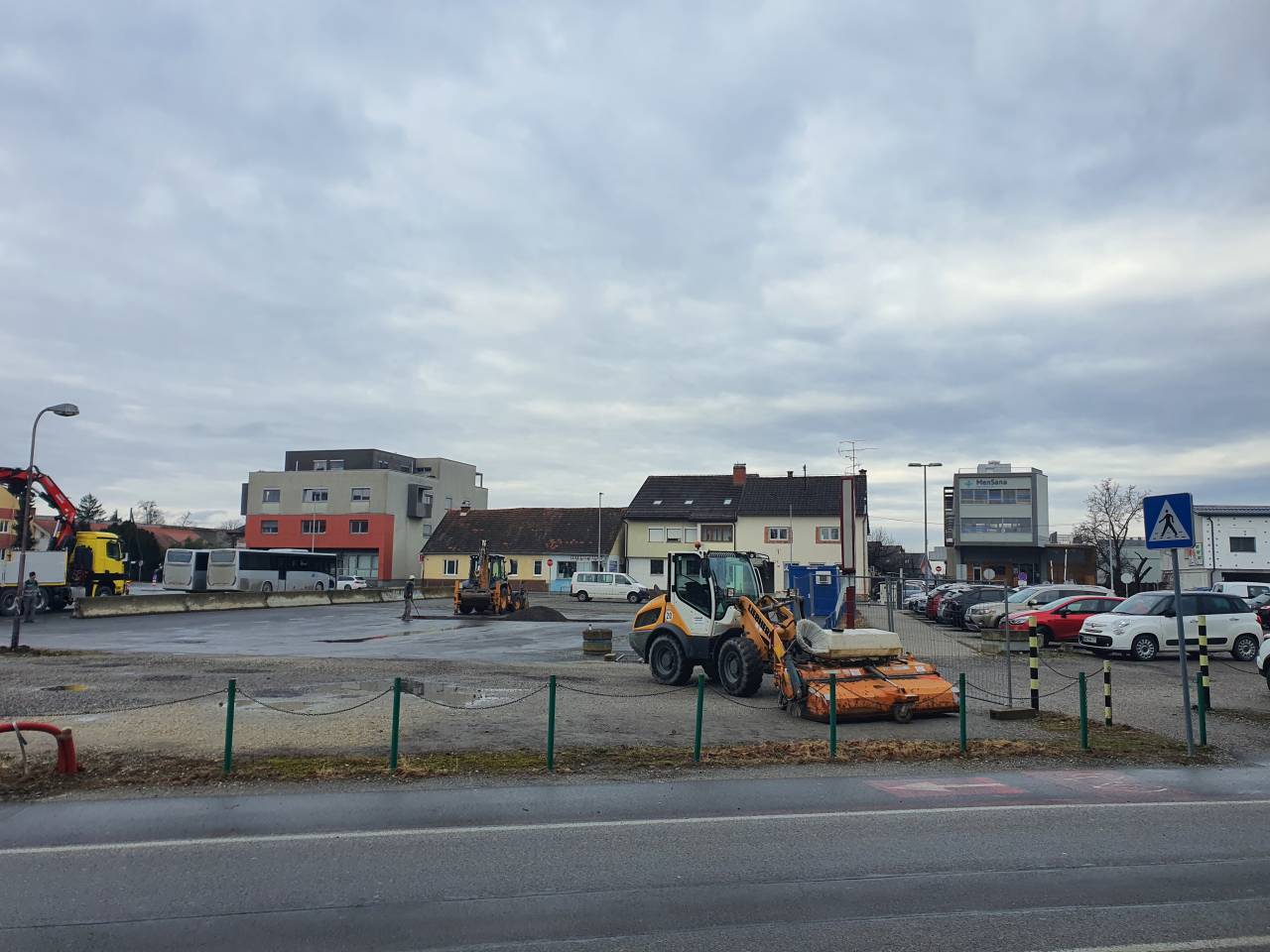 Na območju makadamskega parkirišča v neposredni bližini knjižnice in avtobusne postaje v Murski Soboti so danes zabrneli stroji.