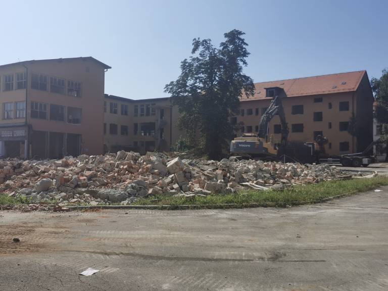 Danes se je pričelo dolgo pričakovano rušenje nekdanjega Potrošnika, na mestu katerega bo zrasel Mercatorjev trgovski center.
