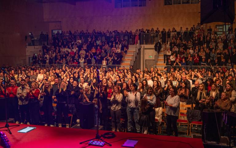 Občinstvo je s svojo energijo in petjem izkazalo, kako globoko so njegove pesmi zakoreninjene v srcih poslušalcev.