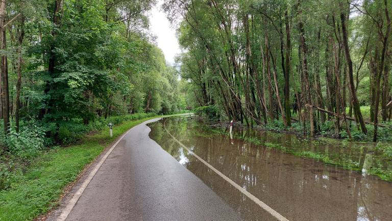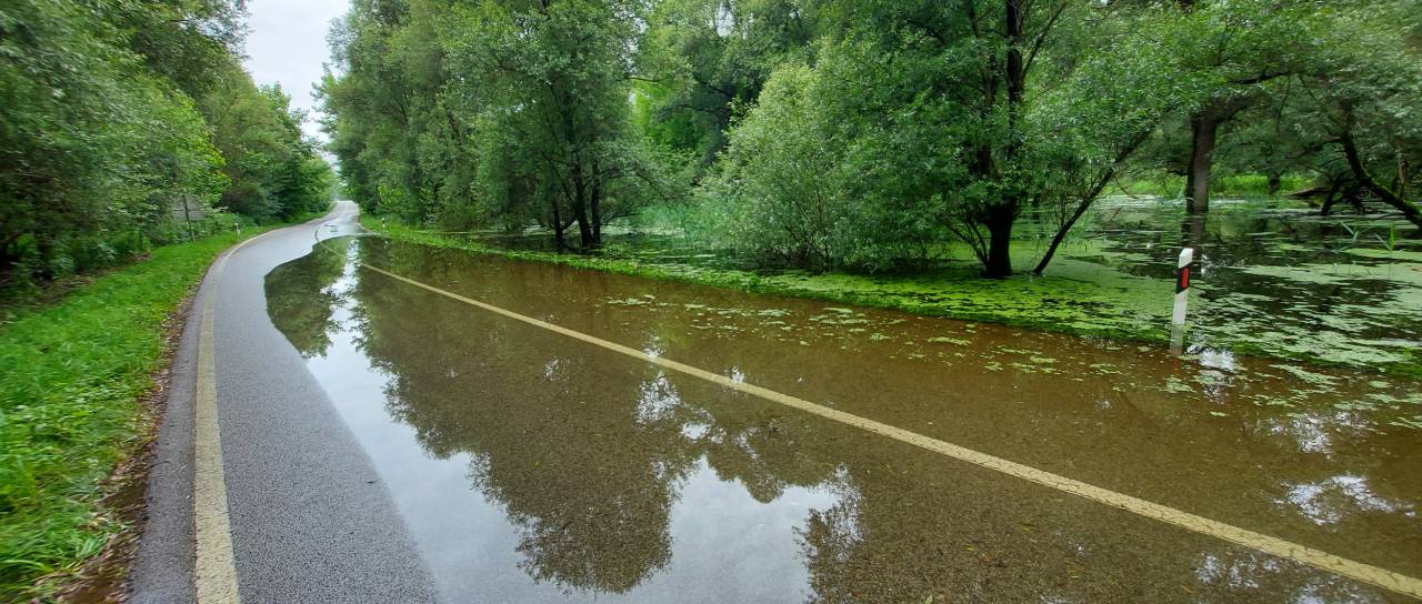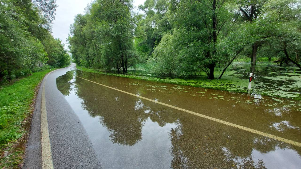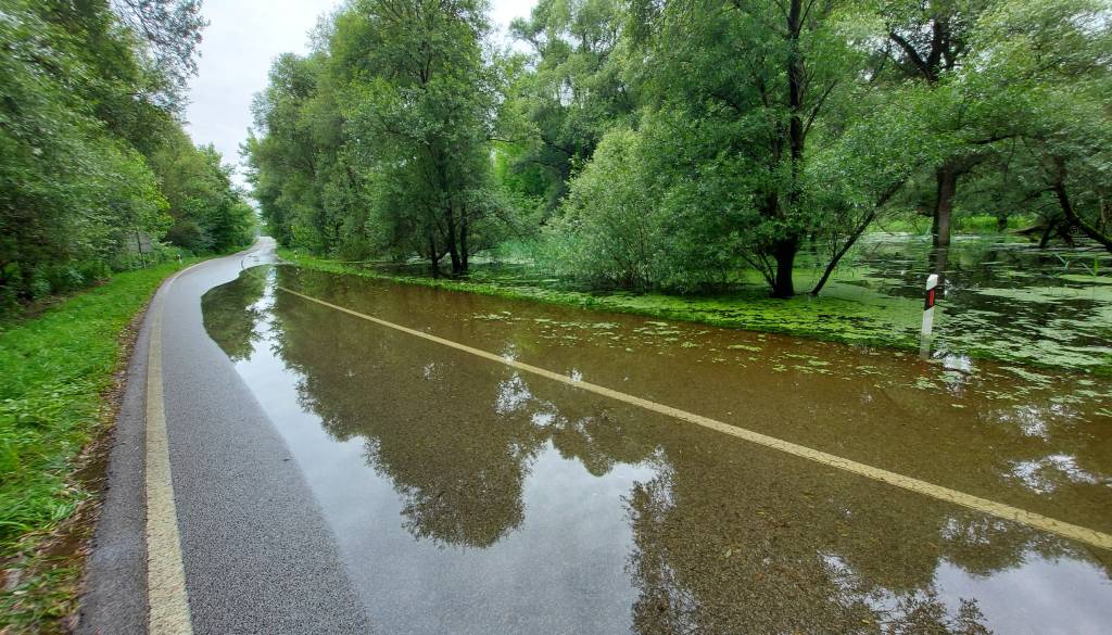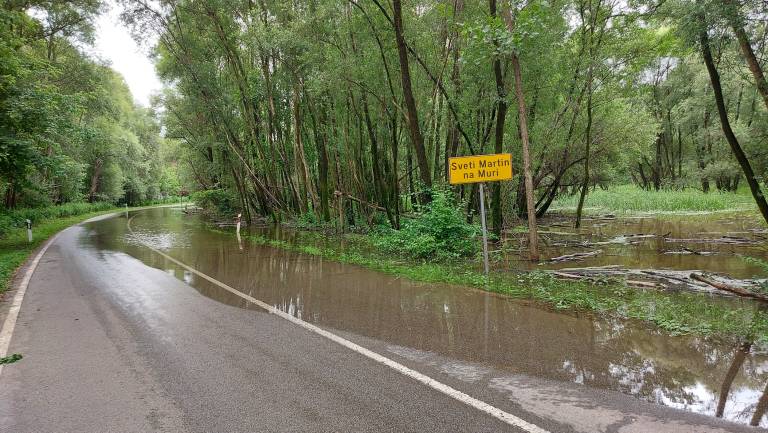 Cesta med Svetim Martinom na Muri in Hotizo je že poplavljena.