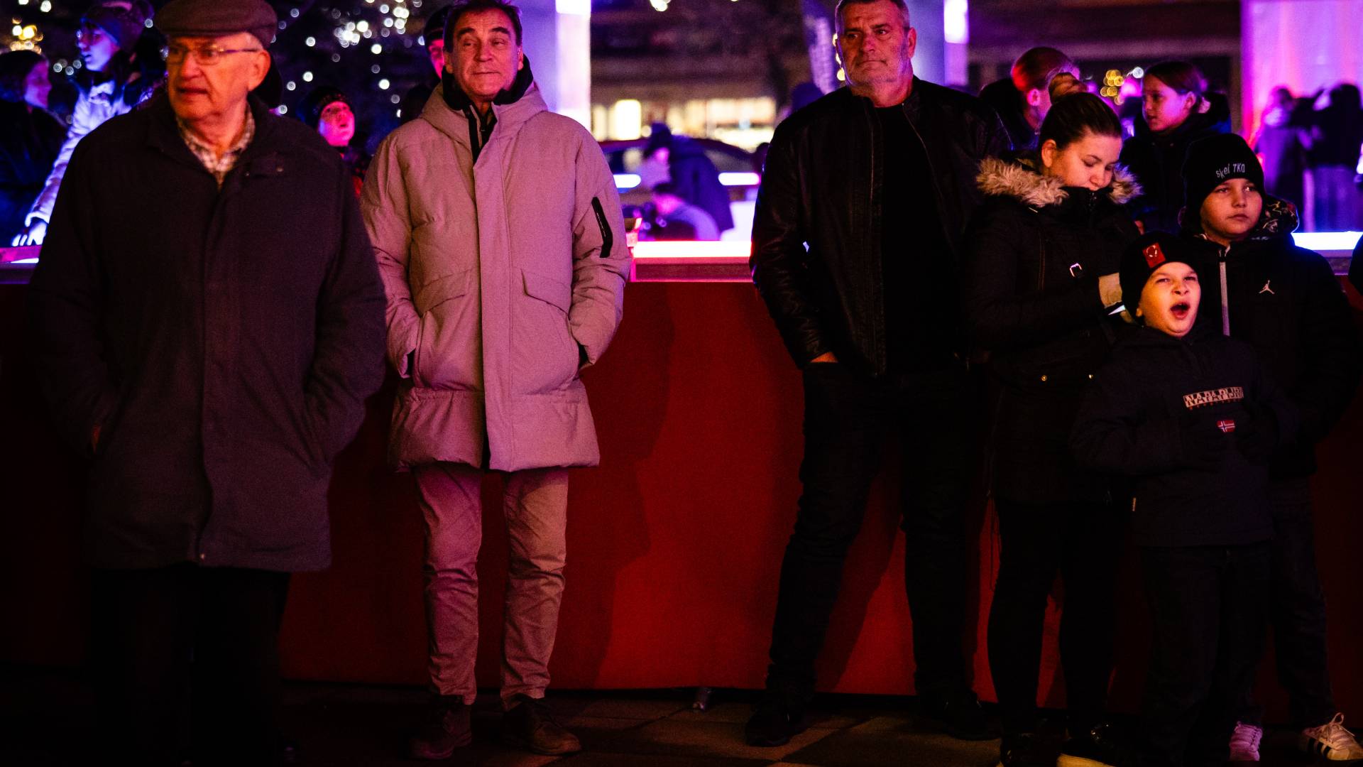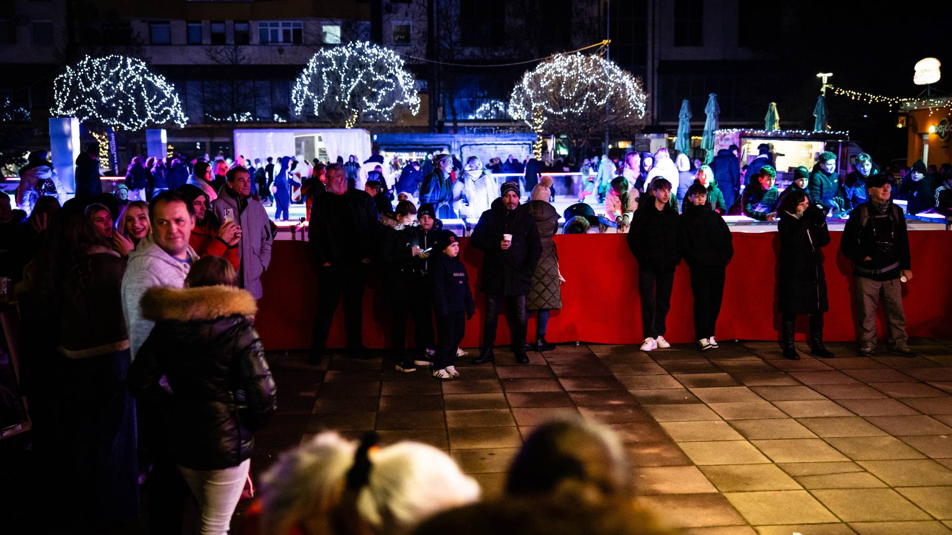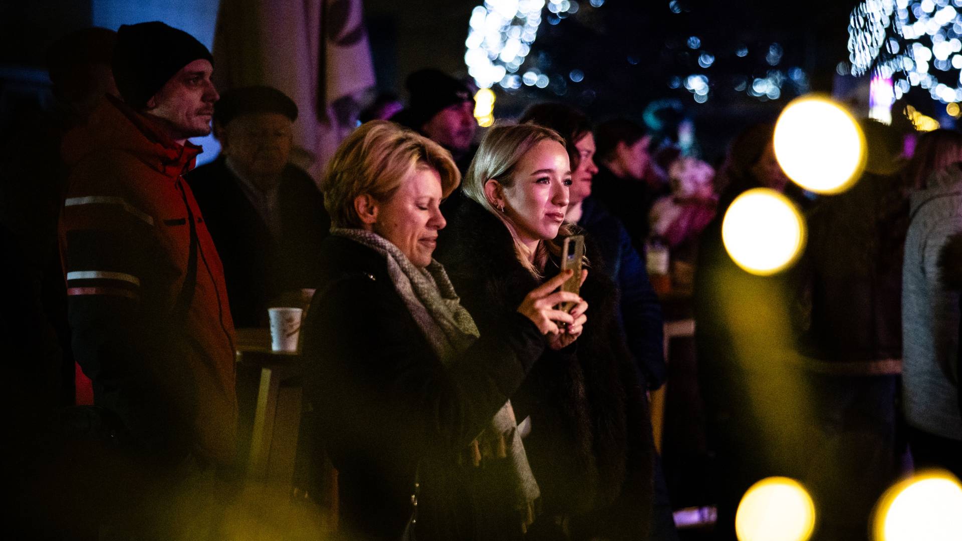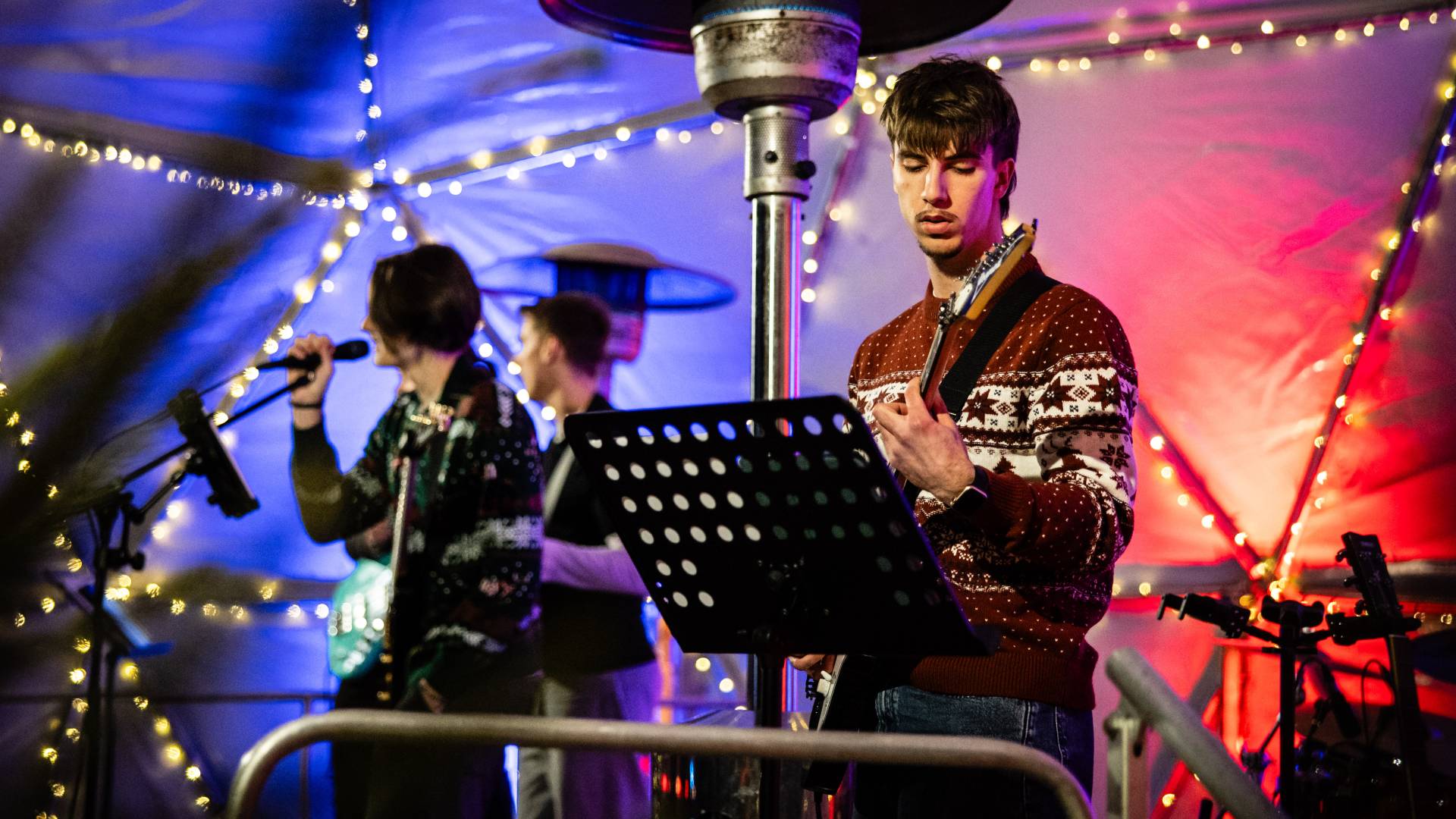 Koncert je privabil obiskovalce, ki so ob zimskem ambientu in praznično okrašenem prizorišču uživali v energičnem rock nastopu mladih glasbenikov.