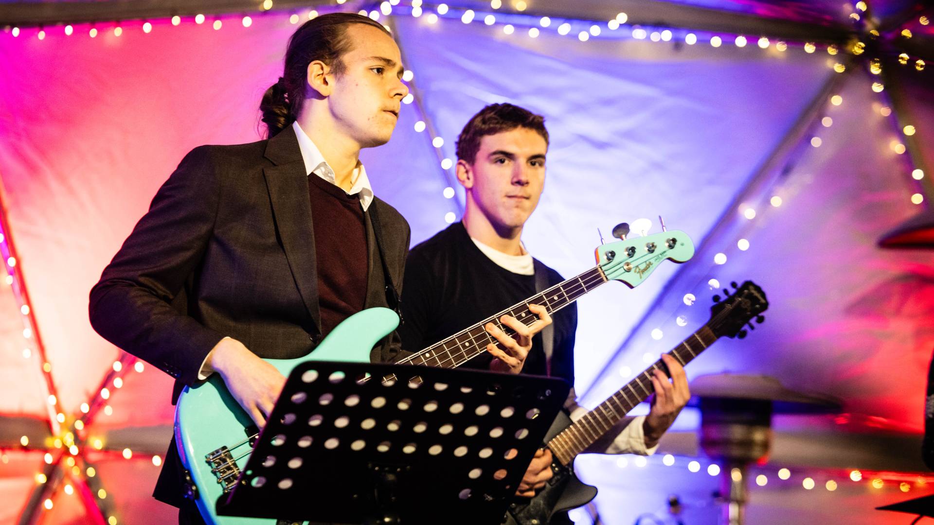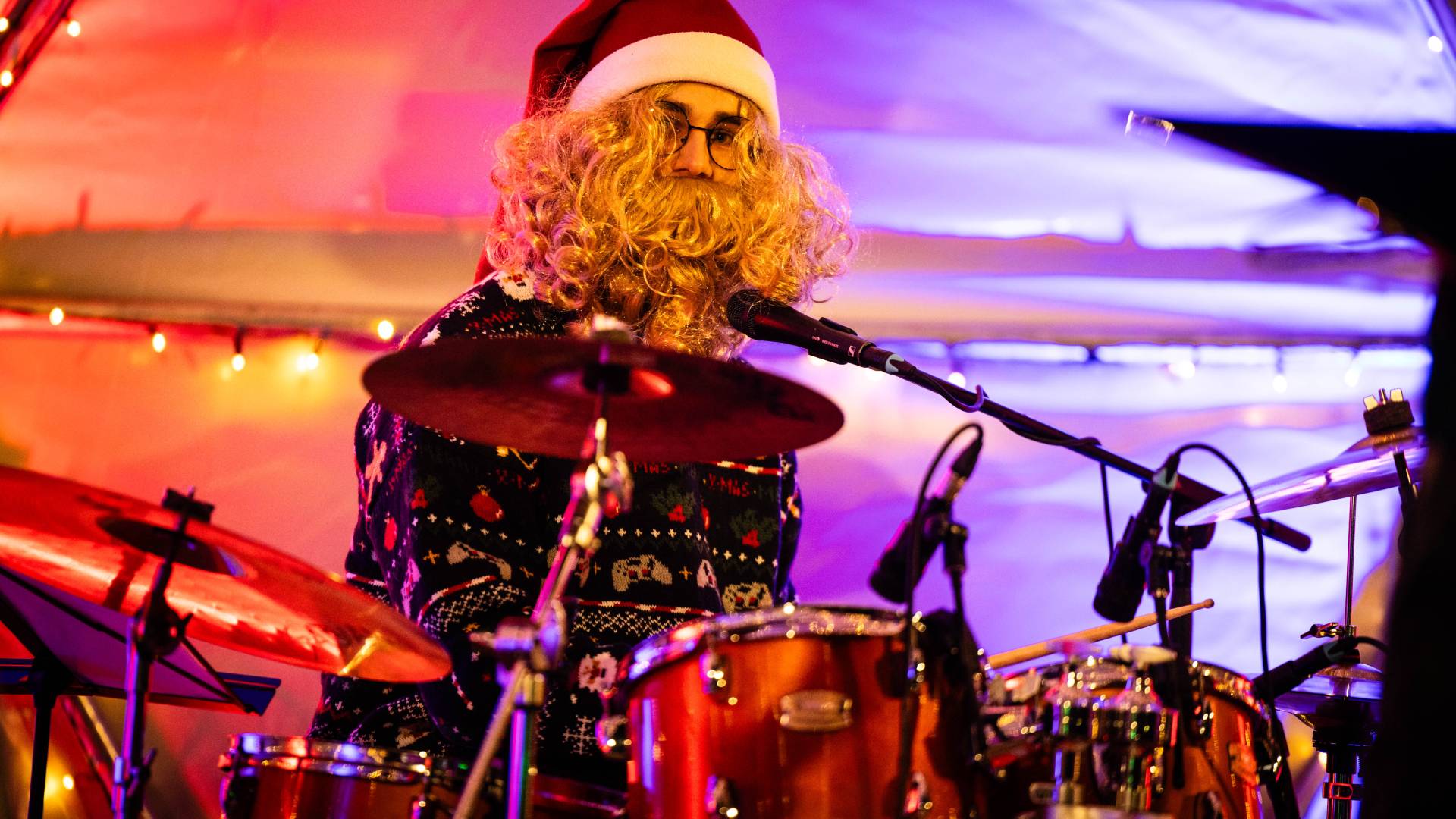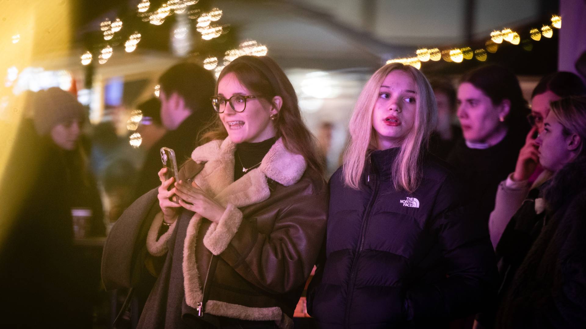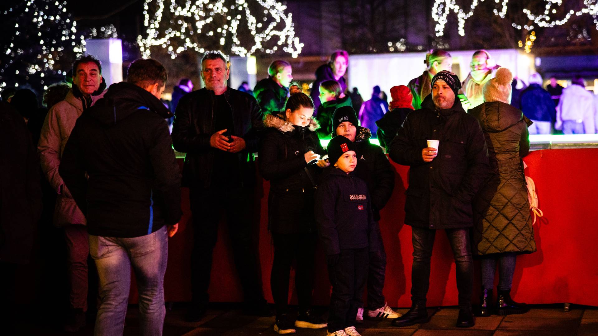 Koncert je privabil obiskovalce, ki so ob zimskem ambientu in praznično okrašenem prizorišču uživali v energičnem rock nastopu mladih glasbenikov.