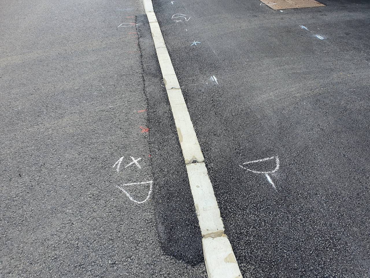 Odpravili smo se tja in opazili, da je očitno prišlo do težav pri polaganju betonskih plošč nad kanalizacijsko cevjo, saj so vzdolž položenih plošč na novo dodajali asfalt.