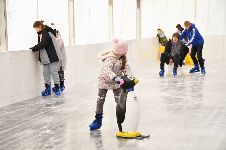 Prav tako je na voljo brezplačna izposoja drsalk, kar dodatno spodbuja obiskovalce vseh generacij, da se preizkusijo na ledu.