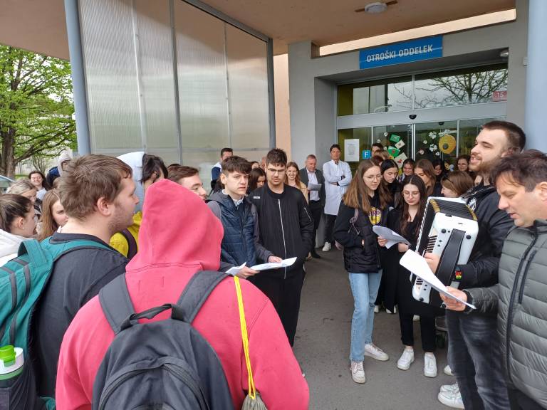 Dijaki so, pod vodstvom Edvarda Jakšiča, zaigrali na harmoniko in zapeli več slovenskih pesmi. Pridružili so se jim tudi zaposleni v Splošni bolnišnici Murska Sobota in pacienti, za katere so odprli tudi okna.