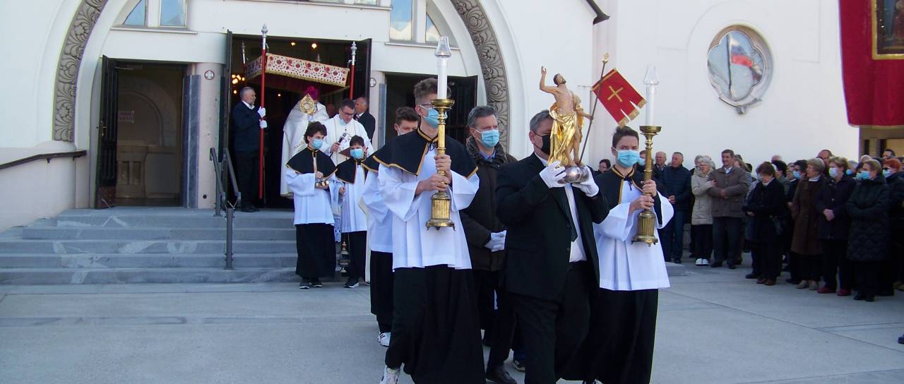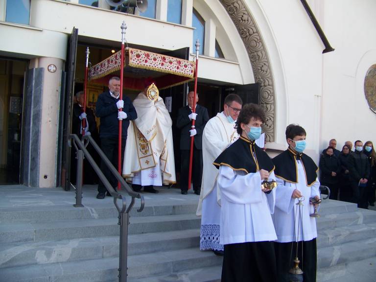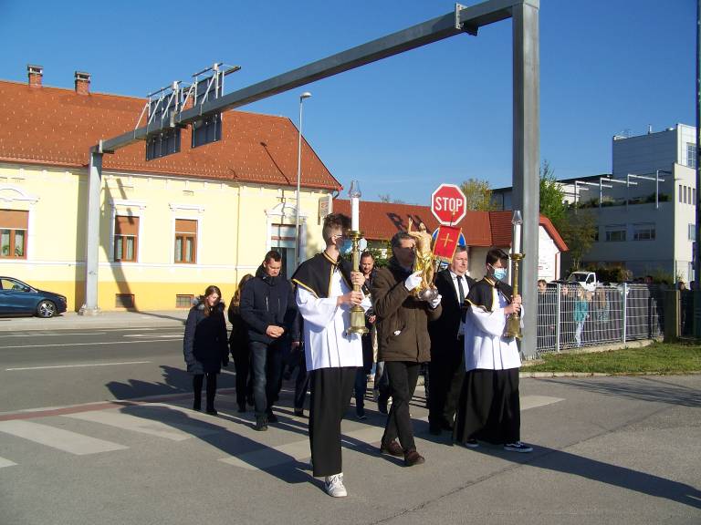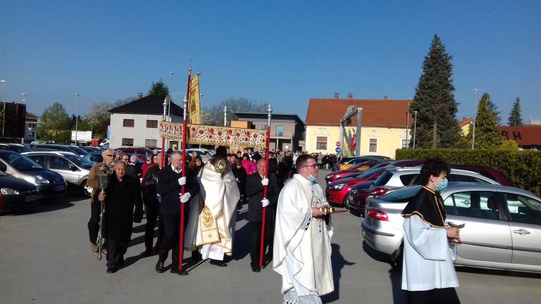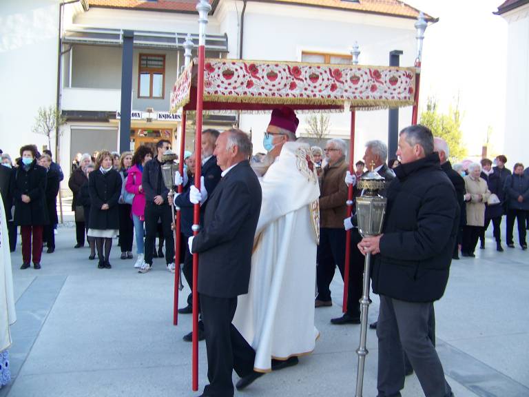 Še preden se je procesija začela je murskosoboški škof Peter Štumpf v cerkvi ob spremljali mešenega cerkvenega pevskega zbora trikrat odpev Aleluja - Kristus je vstal.