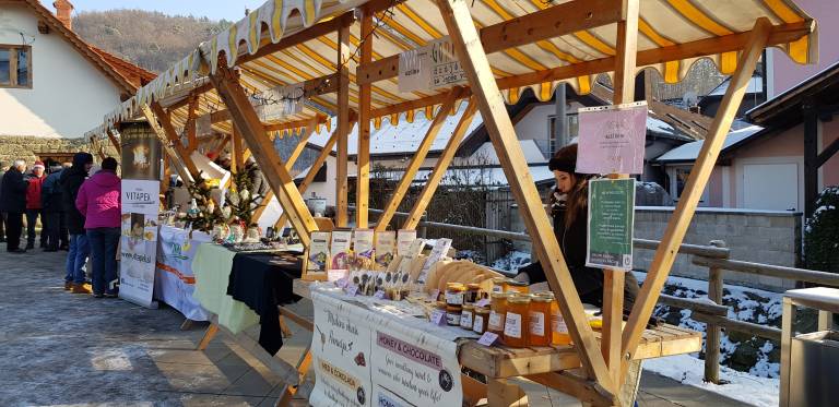 Obiskovalce so pričakale stojnice z domačimi dobrotami in rokodelskimi izdelki, božične dobrote, kuhanček, otroška delavnica in fotografiranje z Božičkom.