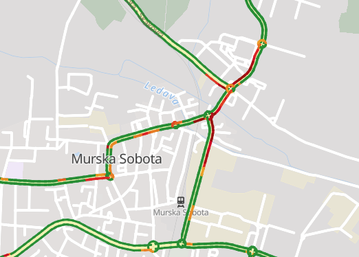 Kot je vidno na prometno-informacijskem centru, je v Murski Soboti, tudi zaradi zapore Noršincke ulice, promet močno upočasnjen, do zastojev prihaja na Lendavski in Industrijski ulici.