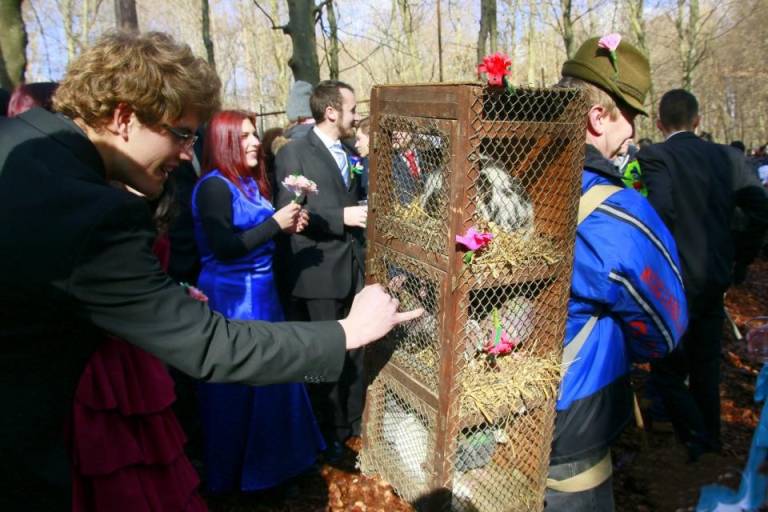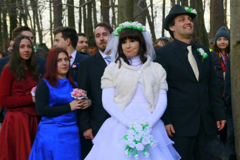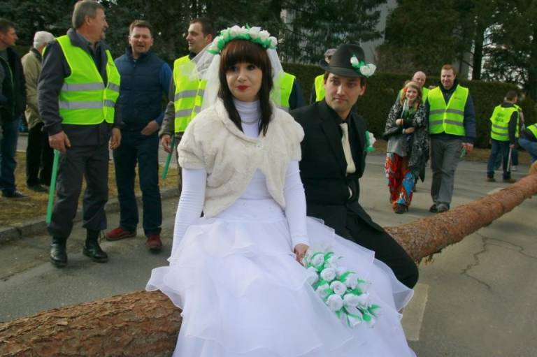 Po uspešni ubranitvi so se z borom odpravili do gasilskega doma, kjer je sledila šaljiva uradna poročna slovesnost in veselica.