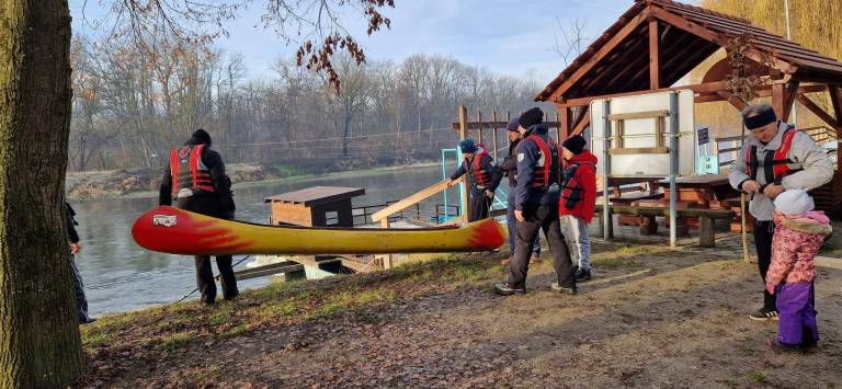 Za nekaj časa so se ustavili pri obrežju reke Mure pri ribičih, kjer so jih ribiči postregli z ribami. Tok vode jih je do Otoka ljubezni v Ižakovcih potiskal s primerno vožnjo, saj so za veslanje uporabljali tudi vesla.