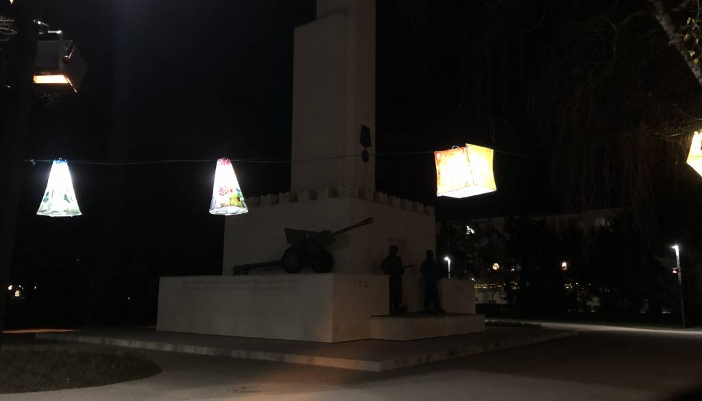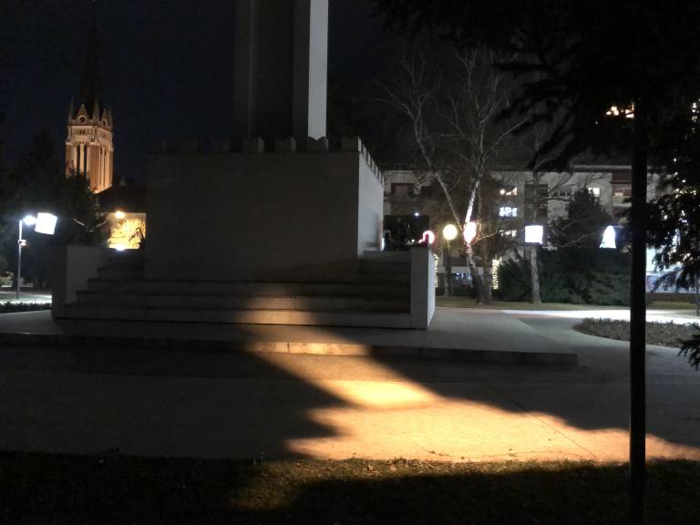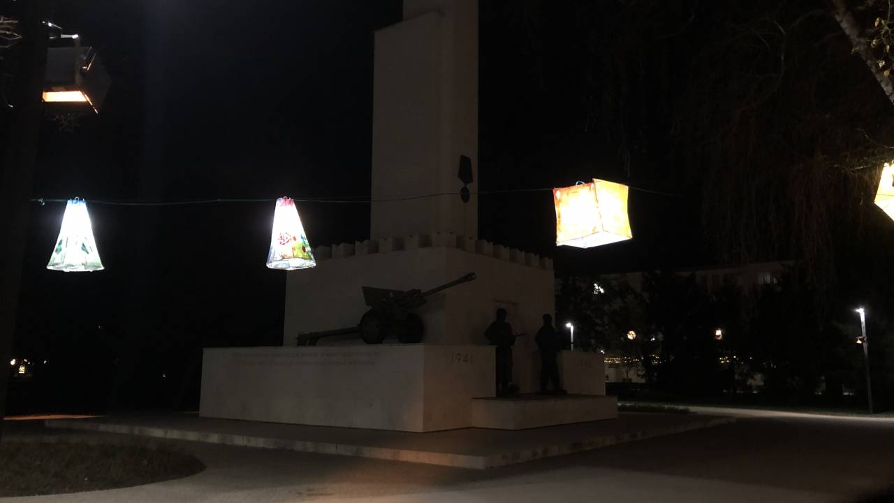 Osvetlitev spomenika na Trgu zmage žrtev vandalov.