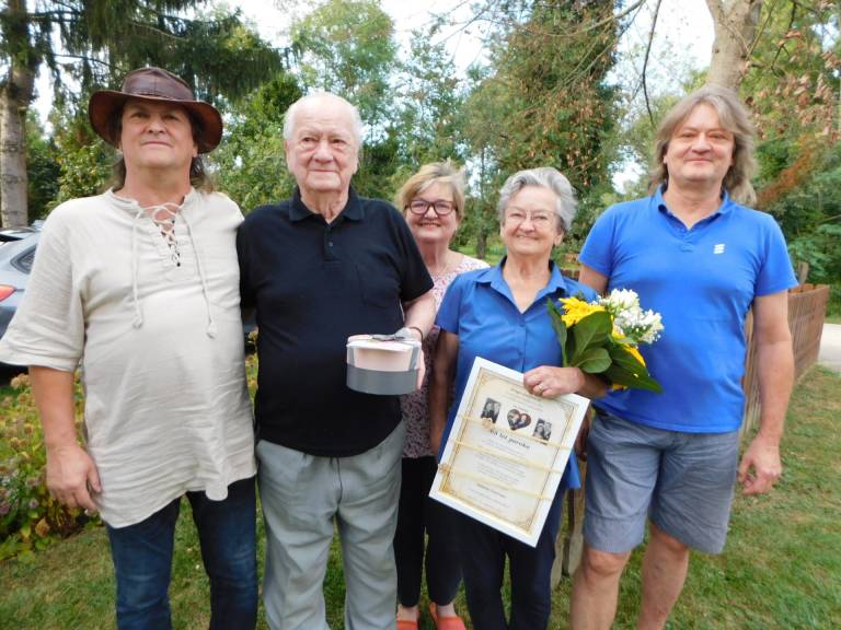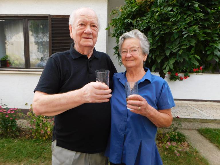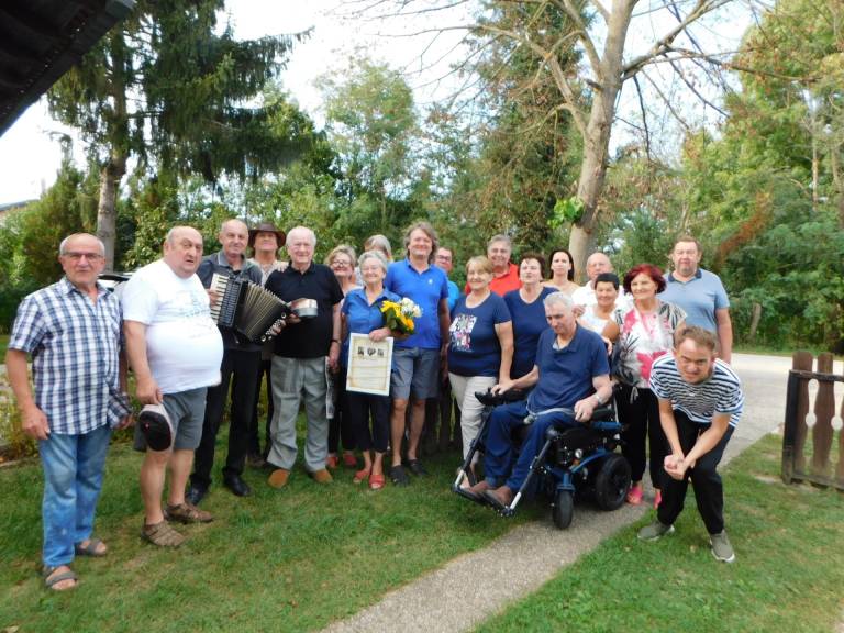 Na druženju ob njuni 65. obletnici poroke so se poleg domačih zbrali še sosedje in prijatelji ter skupaj nazdravili Ivanu in Matildi Kavaš.