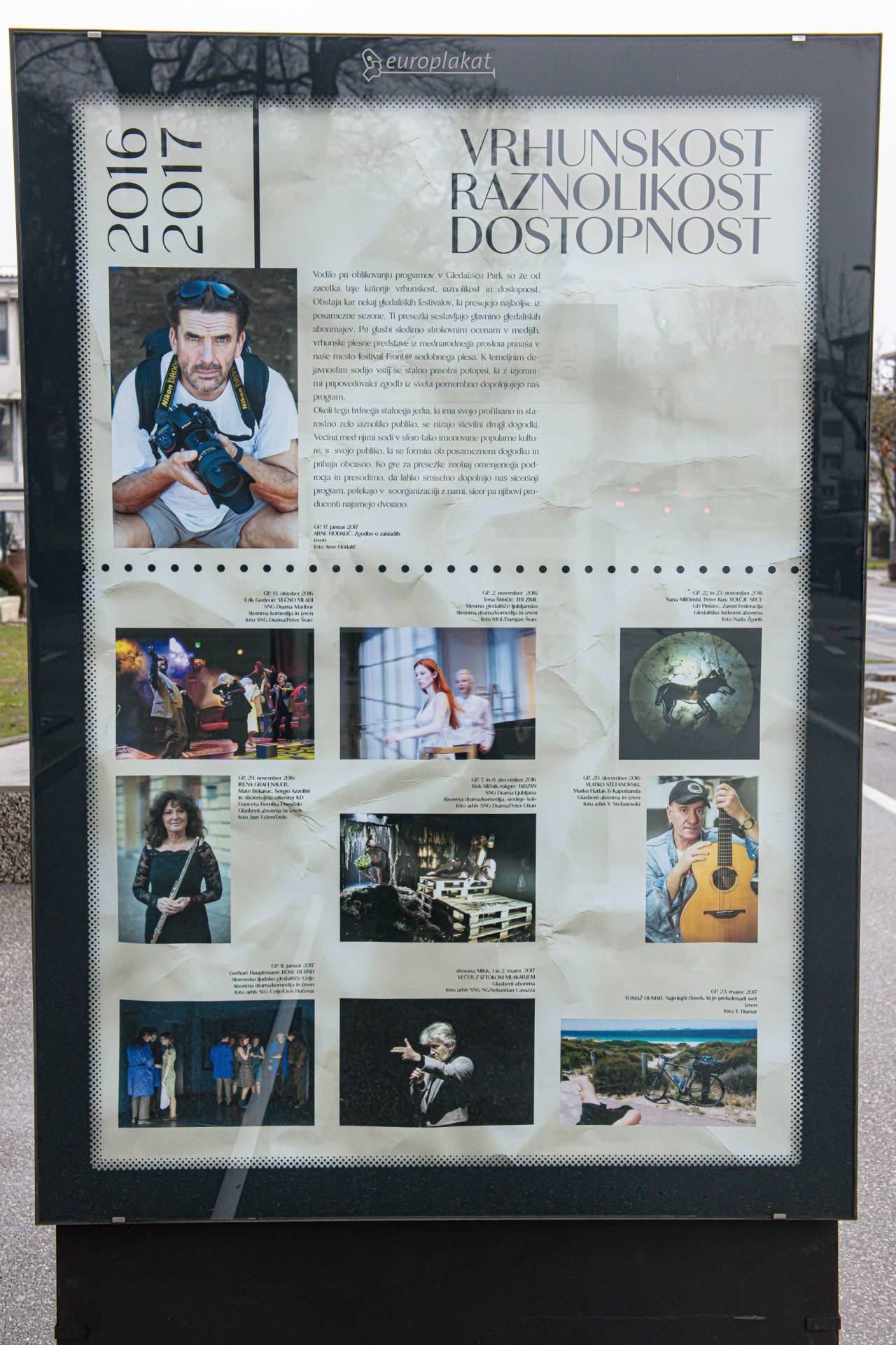 Razstava s kratkimi besedili in izbranimi fotografijami govori o vsebinah posameznih sezon in različnih občinstvih, ki jih nagovarjajo, o programskih odločitvah, o naravi, namenu in smislu njihovega dela, o presežkih in zadregah, preteklosti in prihodnosti …