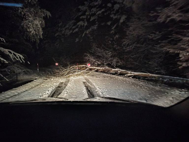 Na relaciji Kuzma - Sotina je na cesto padlo drevo. Tudi cesta Gornji Petrovci - Šulinci je bila zaradi podrtega drevja neprevozna.