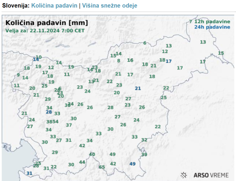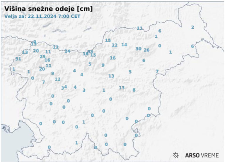 V zadnjih 24 urah so se v Sloveniji pojavljale padavine, sprva v obliki dežja, se je pa na številnih območjih meja sneženja spuščala do nižin.
