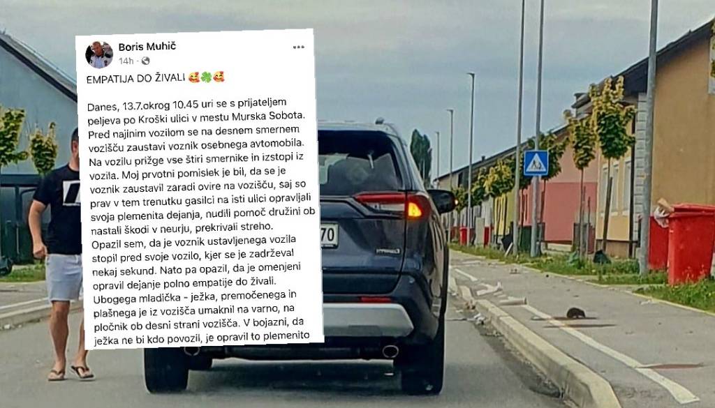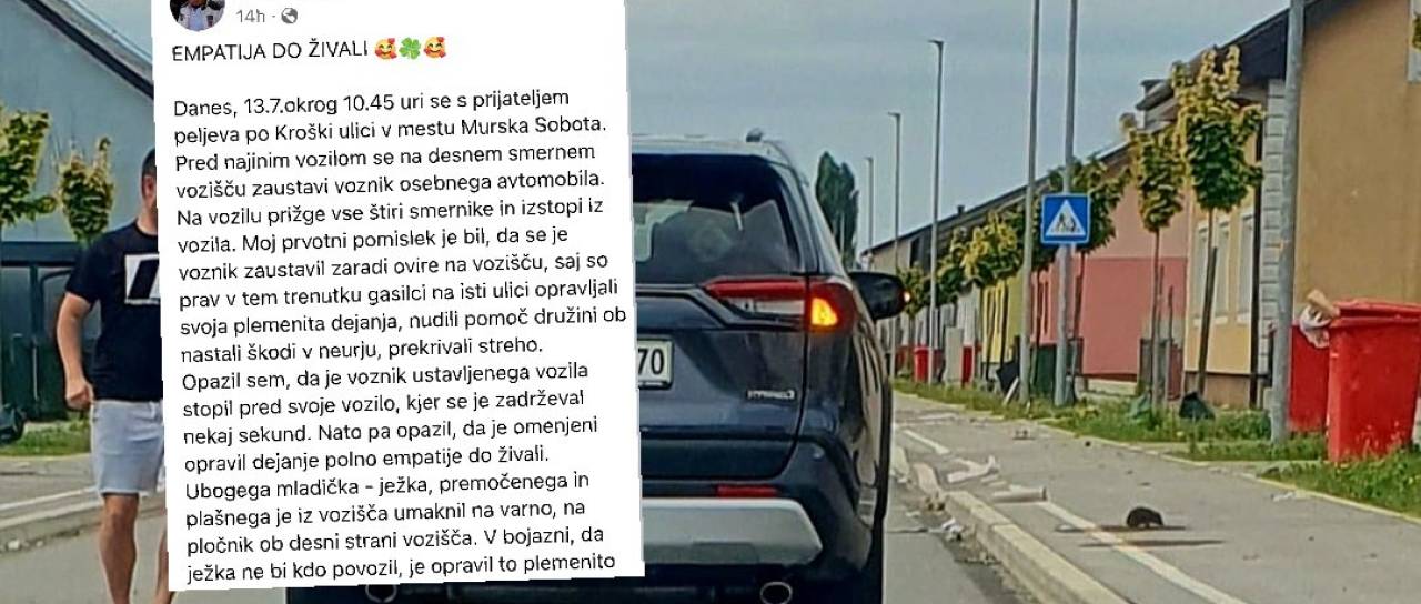 »Ubogega mladička - ježka, premočenega in plašnega je iz vozišča umaknil na varno, na pločnik ob desni strani vozišča. V bojazni, da ježka ne bi kdo povozil, je opravil to plemenito dejanje.