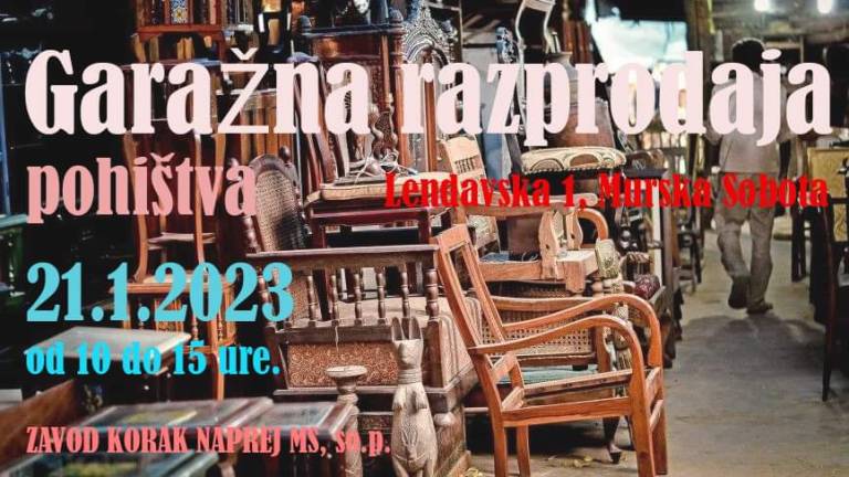 Zavod Korak iz Murske Sobote, jutri, 21. januarja 2023 organizira prvo garažno razprodajo.