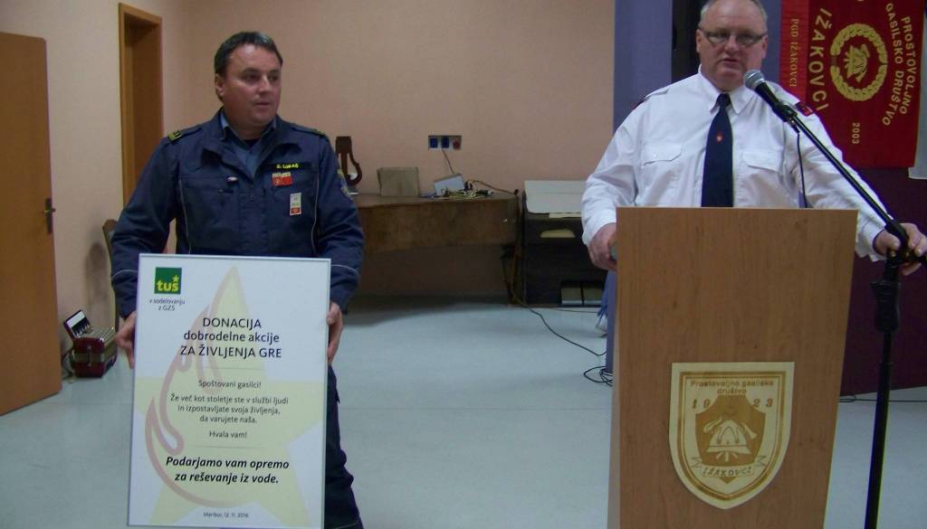 V okviru dobrodelne akcije Za življenja gre so prostovoljna gasilska društva podravske in pomurske regije prejela donacijo opreme. Akcija je pod okriljem Tuša združila dobavitelje in kupce, ki od septembra naprej sodelujejo pri zbiranju sredstev za nakup nujno potrebne gasilske opreme za reševanje na in iz vode.