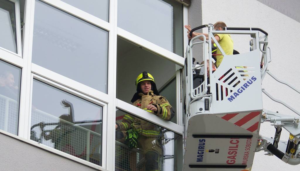 Učenci so brez panike zapustili šolsko stavbo in se z učitelji zbrali na rokometnem igrišču, od koder so opazovali preostanek vaje. V šolskih prostorih je ostalo ujetih nekaj učencev z učitelji, a so morali z reševanjem in evakuacijo počakati do prihoda gasilsko reševalnega vozila gasilskega društva Murska Sobota. Soboški gasilci so na kraj požara prihiteli v nekaj minutah, pregledali vse učilnice in začeli reševanje z 42 metrov dolgo avtomatsko gasilsko lestvijo.