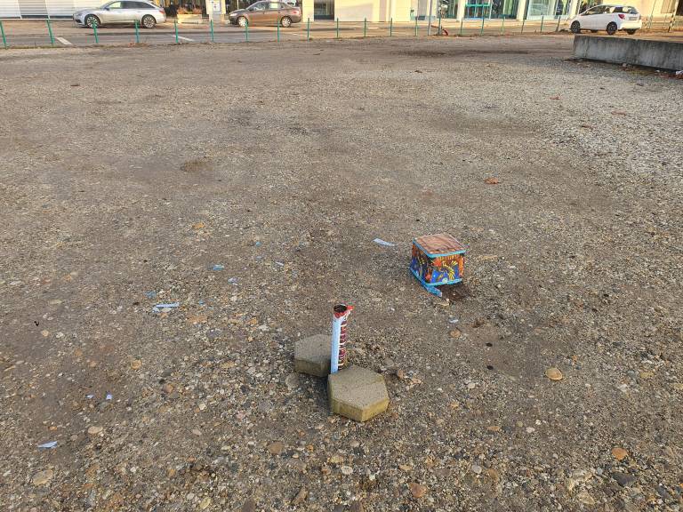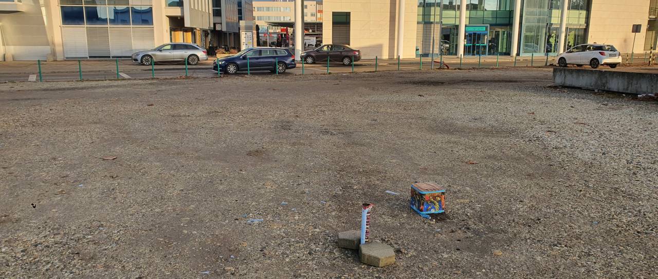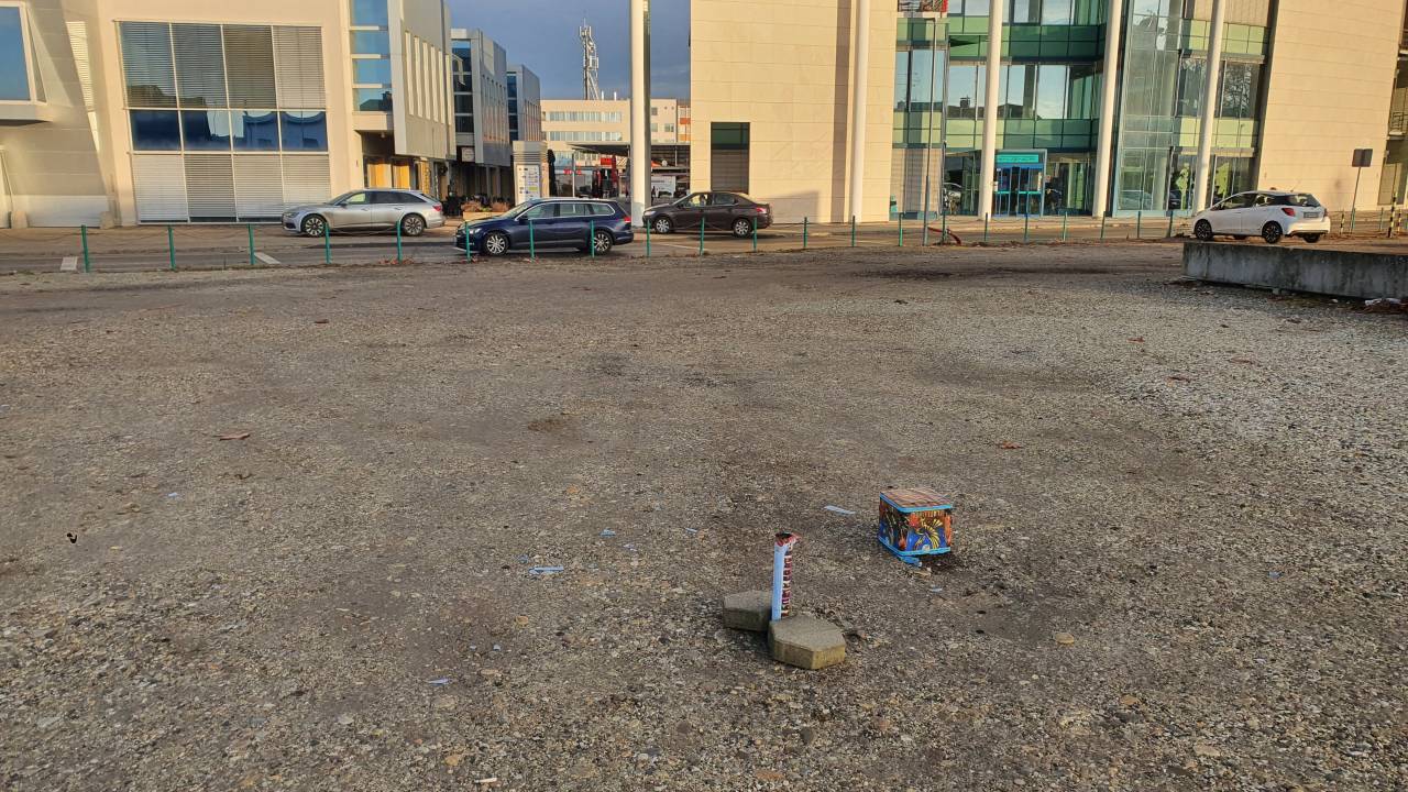 Na gramoznem parkirišču ob Avtobusnem prometu Murska Sobota smo včeraj, 27. decembra, opazili odvržene baterije, rakete in drugo pirotehniko, kar nakazuje na možno povezavo z nenadnimi eksplozijami.